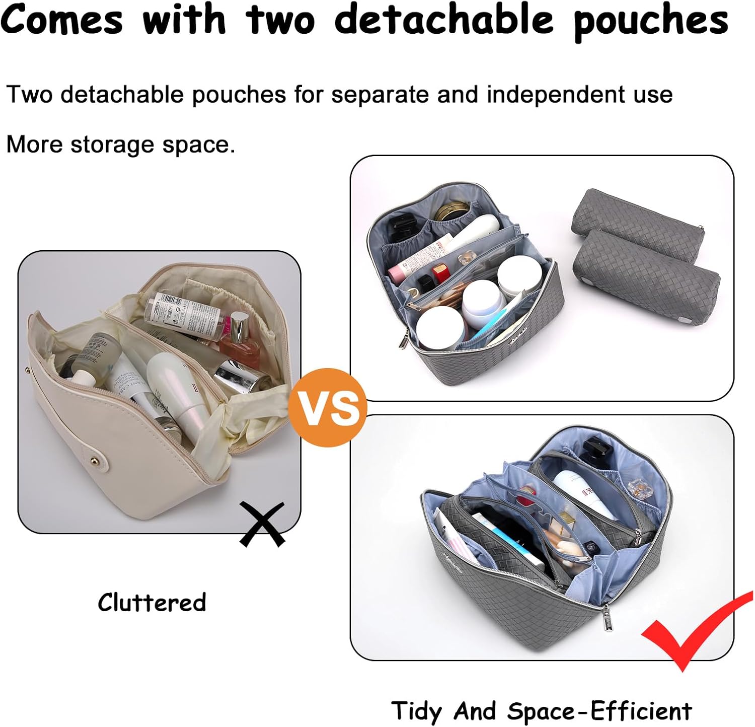 - 3 Pcs Makeup Bags Set: This travel make up bag comes with two detachable makeup pouches, ensuring optimal organization for your skincare products and cosmetics. Perfect for your travel, business trips, vacations, outdoor activities and picnics.