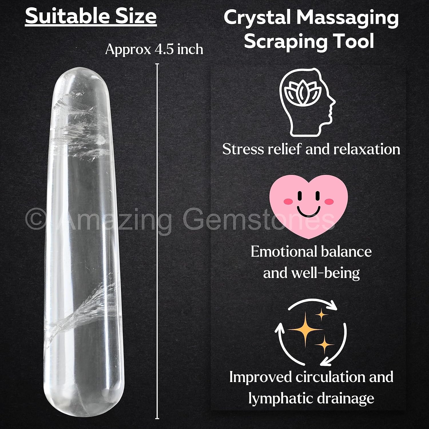 Amazing Gemstone Clear Quartz Crystal Wand Massage Stick - Pelvic Wand Gua Sha for Adults - Crystals and Healing Stones Massage Wands for Adults Gifts (Smooth)