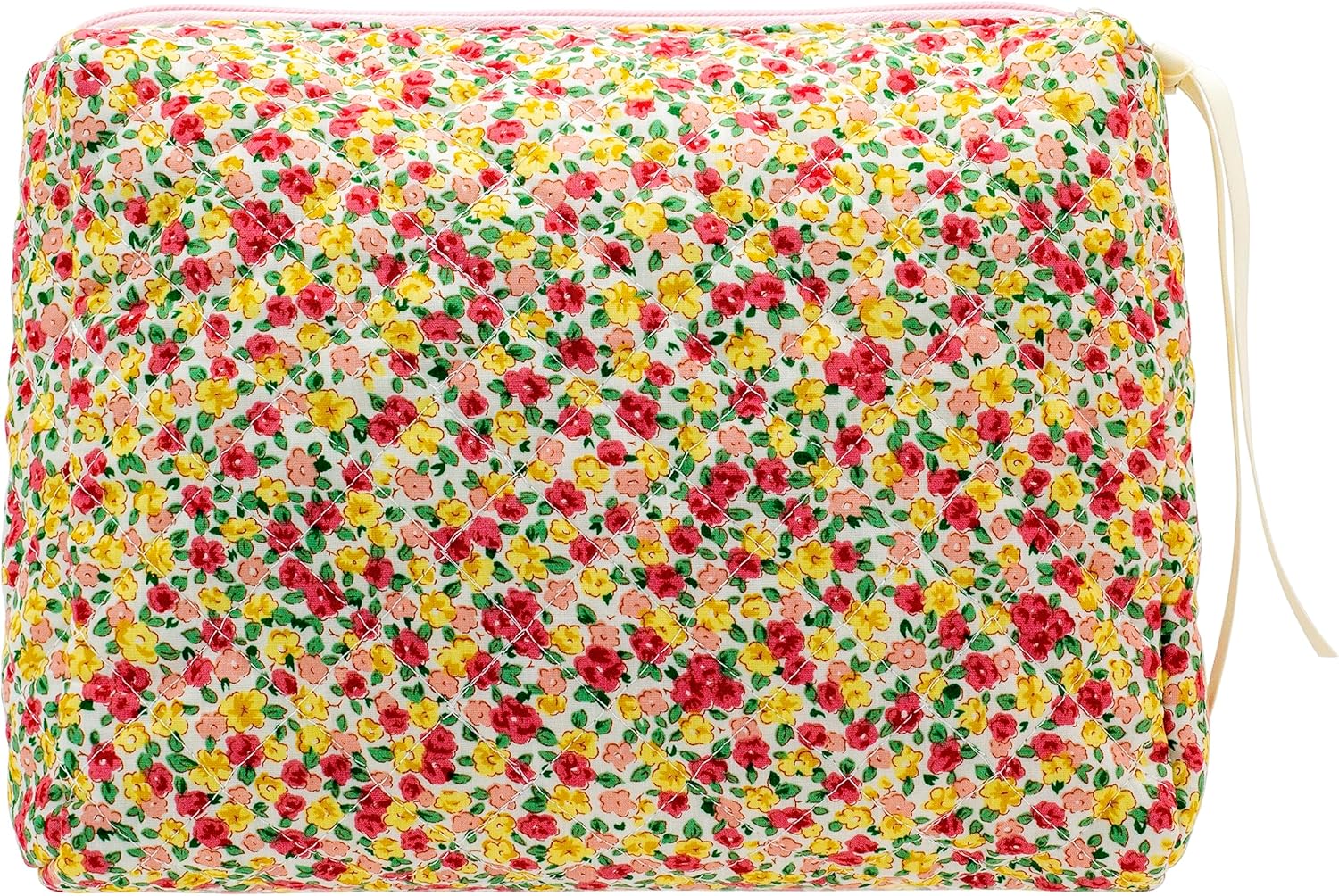 PAZIMIIK Quilted Makeup Bag Large Travel Zipper Soft Cosmetic Pouch for Women Girls Make Up,Little Flower