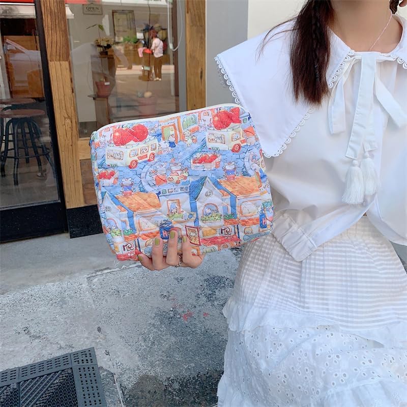 - Elegantly Quilted Exterior: Discover the beauty of our quilted cotton makeup bag, featuring a sophisticated exterior that adds a touch of luxury to your cosmetic organization.SIZE: 9.8'x7.8‘x2.3'(25cmx18cmx6cm)
