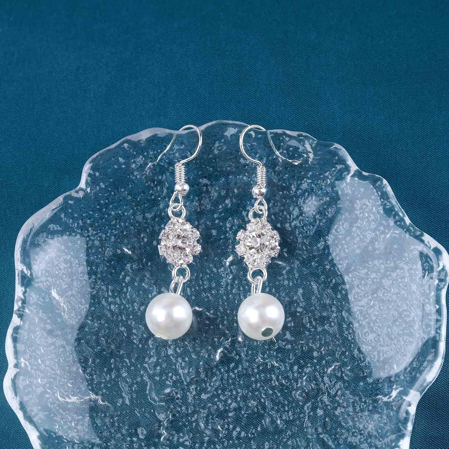 - Crystal pearl dangle earrings keep color and sturdy,simple yet classic.Own your timeless notion of beauty.