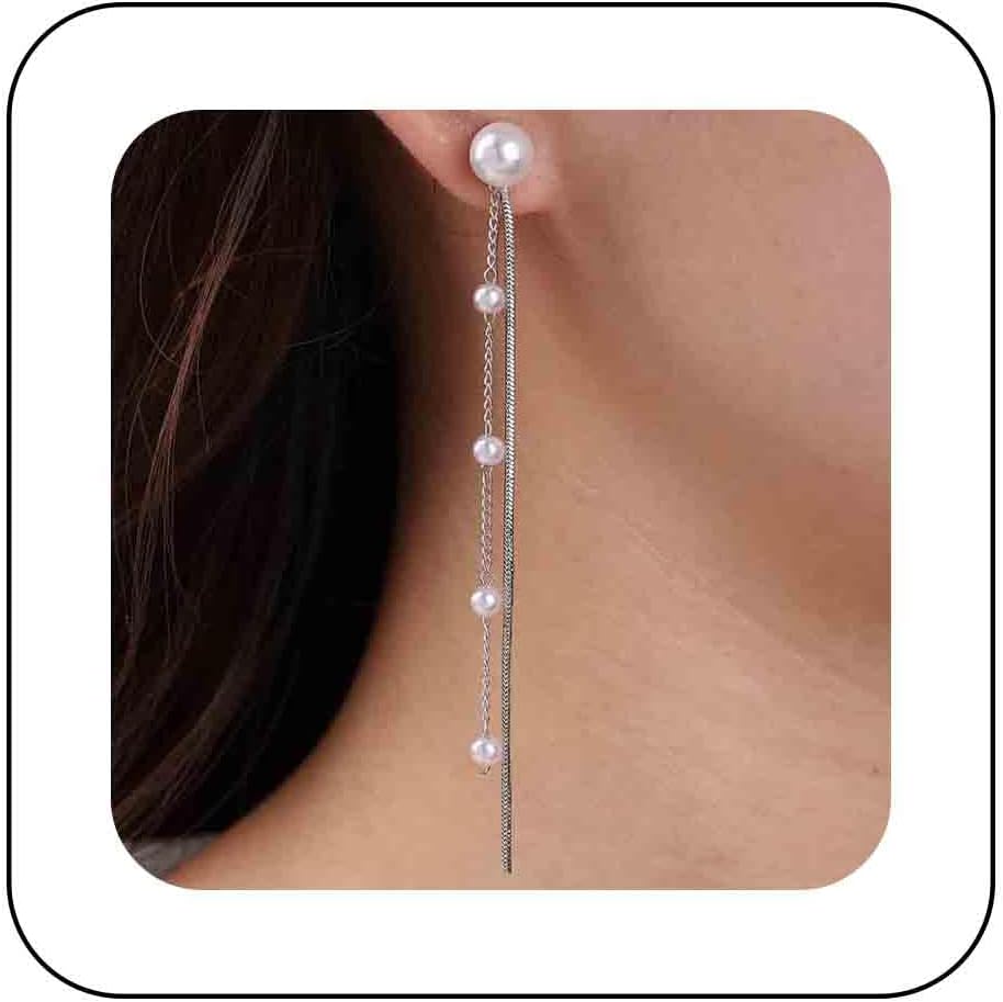 - Silver long pearl earrings.Gift Object:A Unique and Stunning Jewellery,Give it to a Perfect Gifts For a Best Friend or any Beloved Ones.You Will Receive Many Compliments!