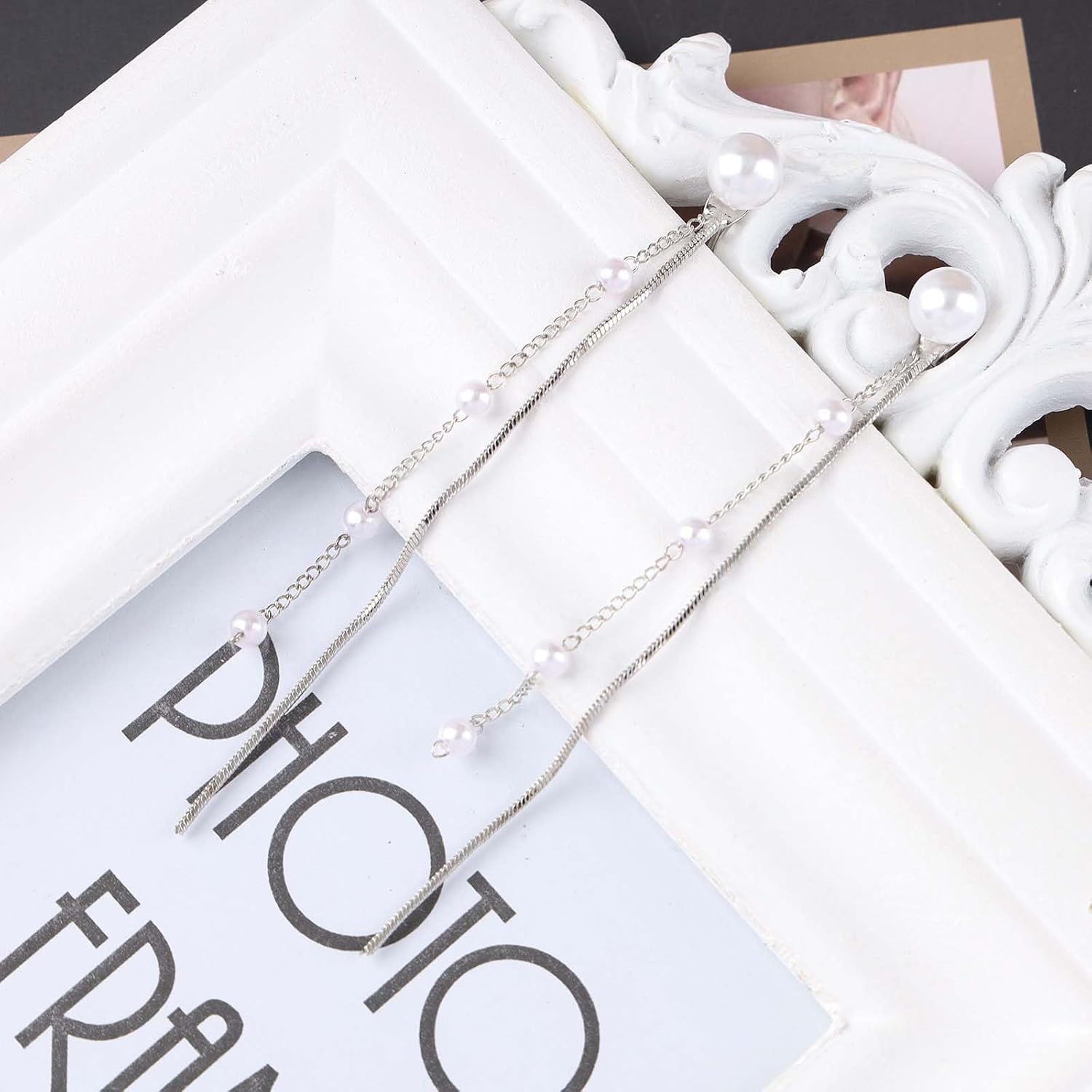 - Long pearl chain earrings.Item design:Diversify Collocation.Used to Groom Your the Ear for a More Layered Look , It is Wonderful Everyday Jewelry,This Earrings Pins is Very Trendy Designed in a Minimalist Style.