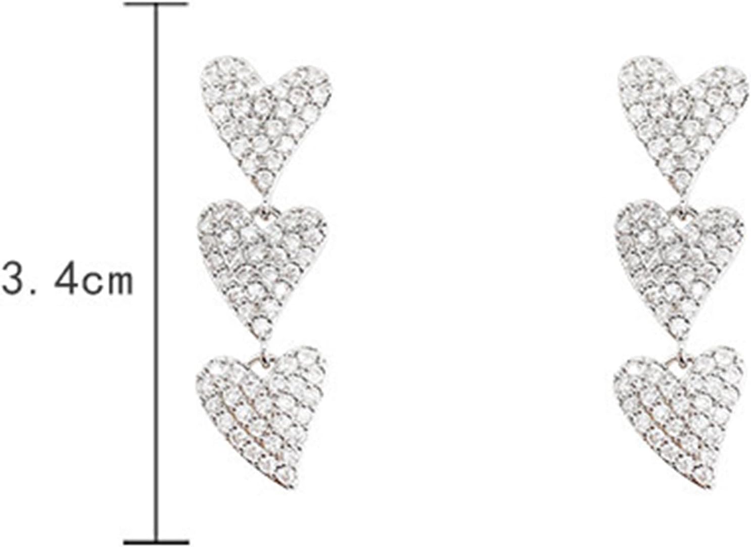 Vintage Heart Drop Earrings Long Heart Dangle Earrings Triple Heart Stud Earrings Silver Love Heart Earrings Jewelry for Women