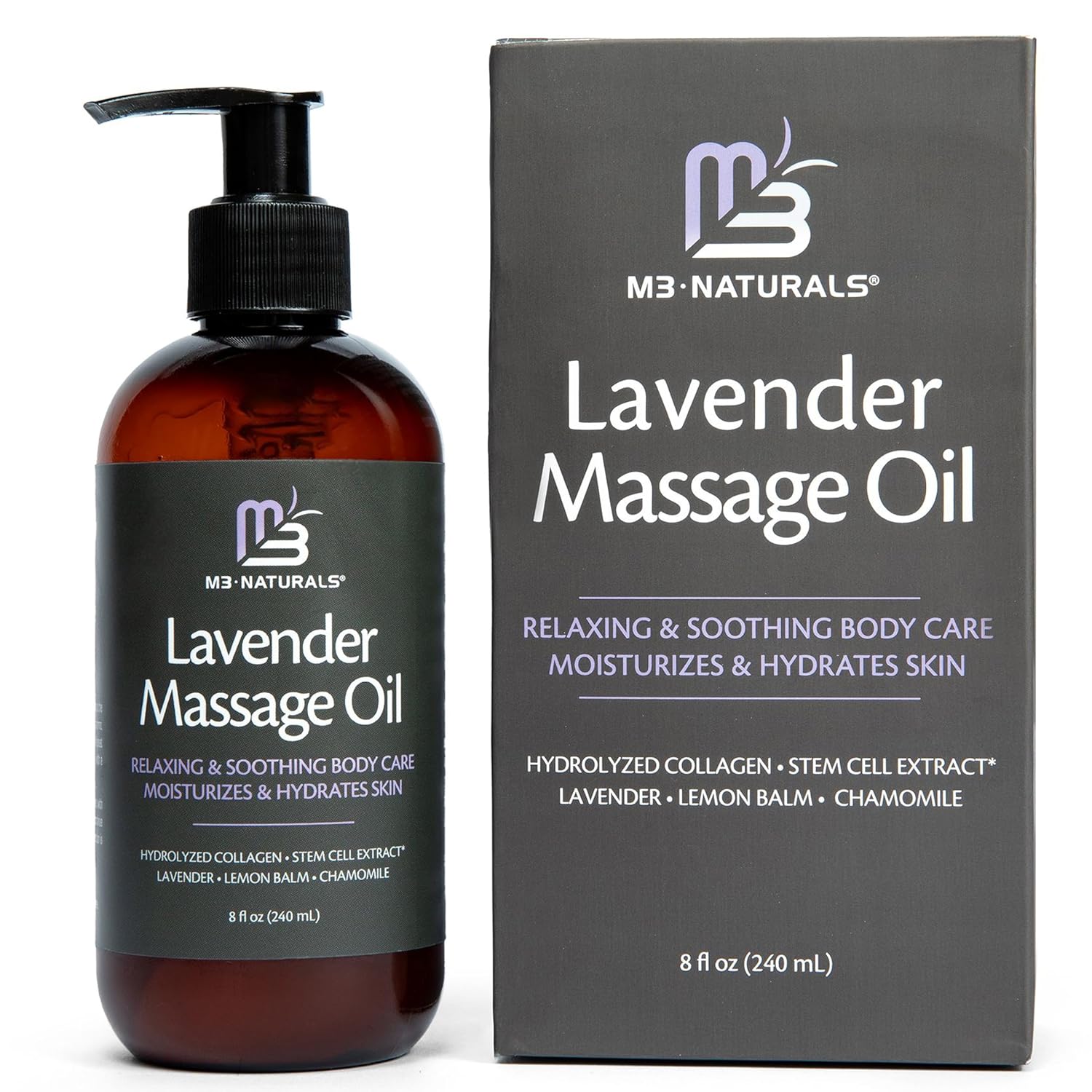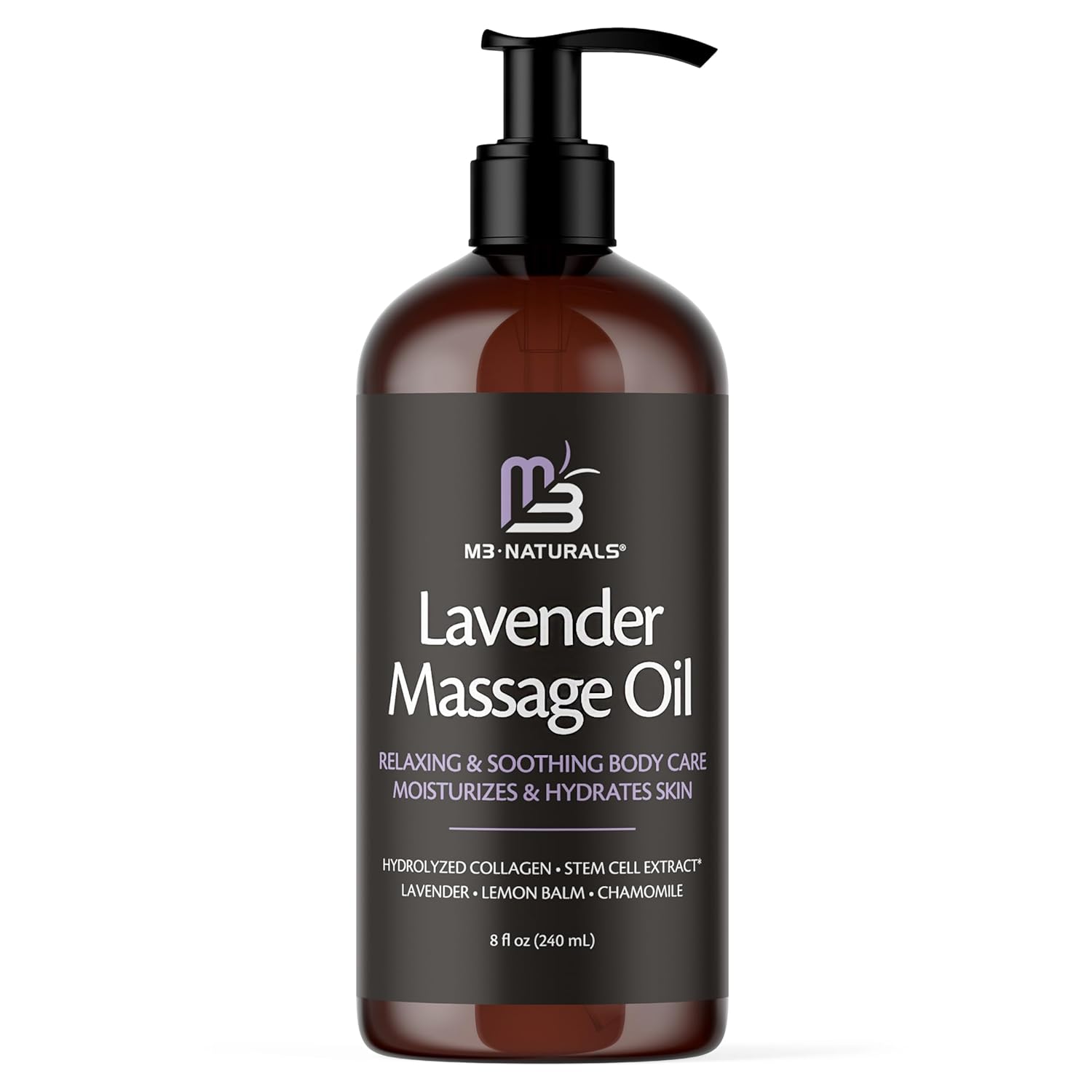 Lavender Sensual Massage Oil with Collagen and Stem Cells, Skin Tightening Therapy for Bum, Thighs, and Belly, Fast-Absorbing Cellulite Oil, 8 fl oz by M3 Naturals