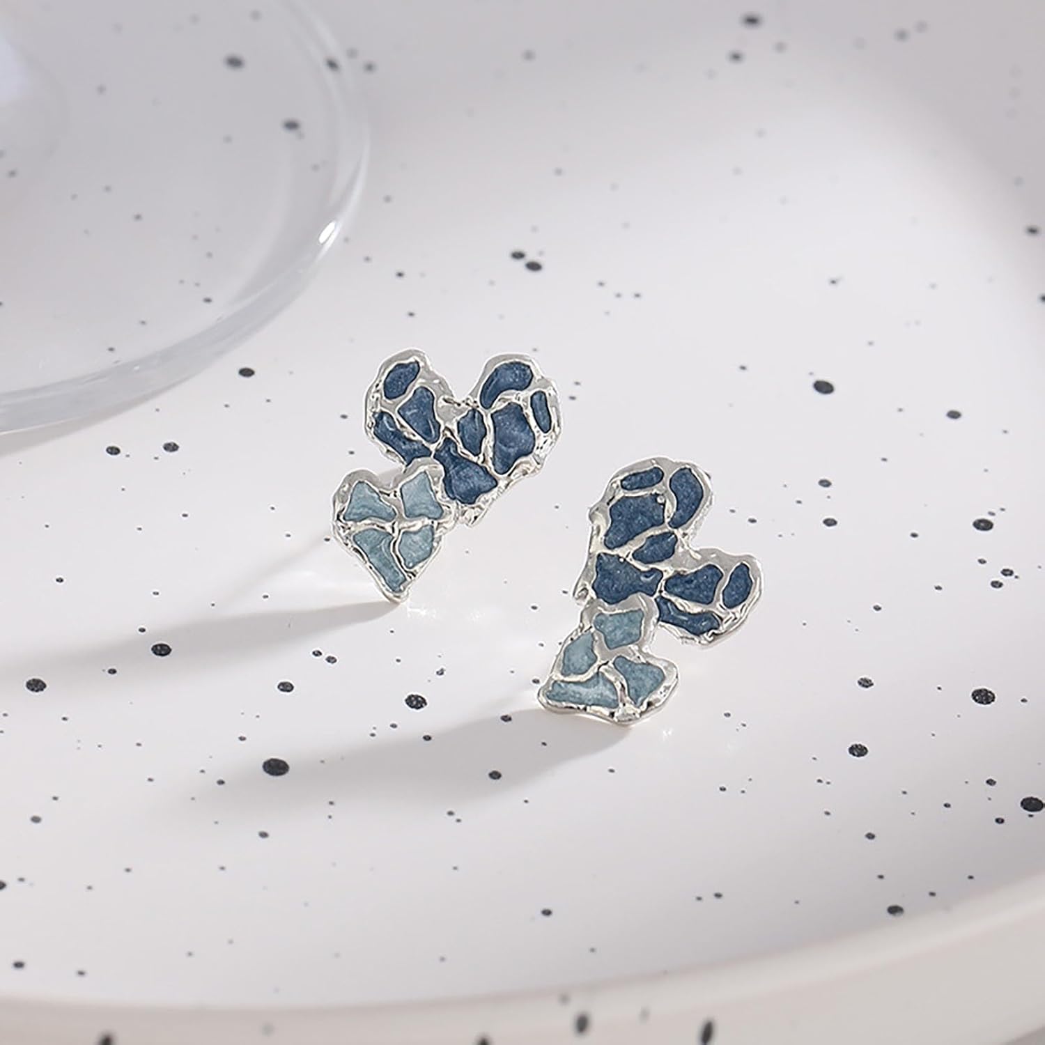 Vintage Blue Heart Stud Earrings Acrylic Heart Earrings Resin Blue Heart Earrings Double Love Heart Earrings Jewelry for Women