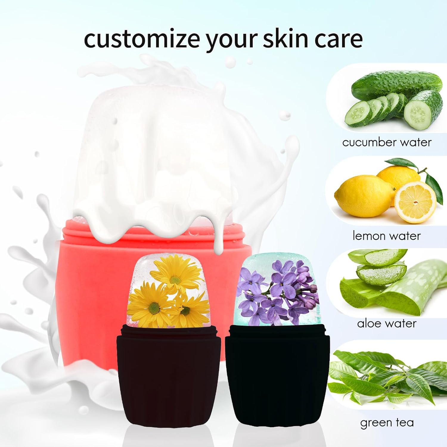 2Pack Ice Roller for Face, Qewro Silicone for Tone skin, Reusable Eye Puffiness Relief, Ice Roller Mold for Neck, Facial Roller to Remove Fine Lines Pores Anti Wrinkles (Black and Black)