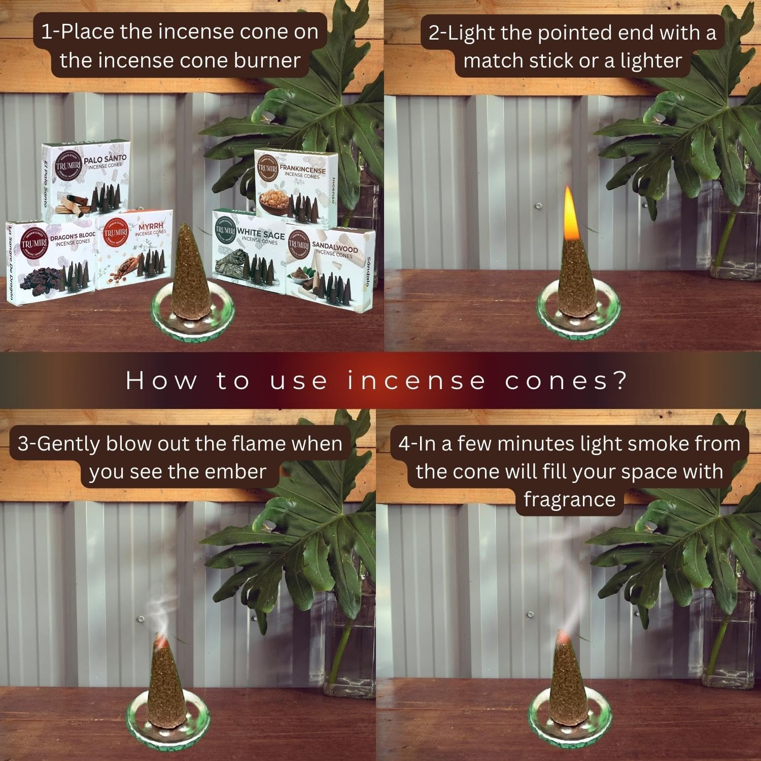 - Premium Scented: Enjoy the delightful aroma of White Sage, Palo Santo, Dragons Blood, Sandalwood, and more with our scented incense cones.