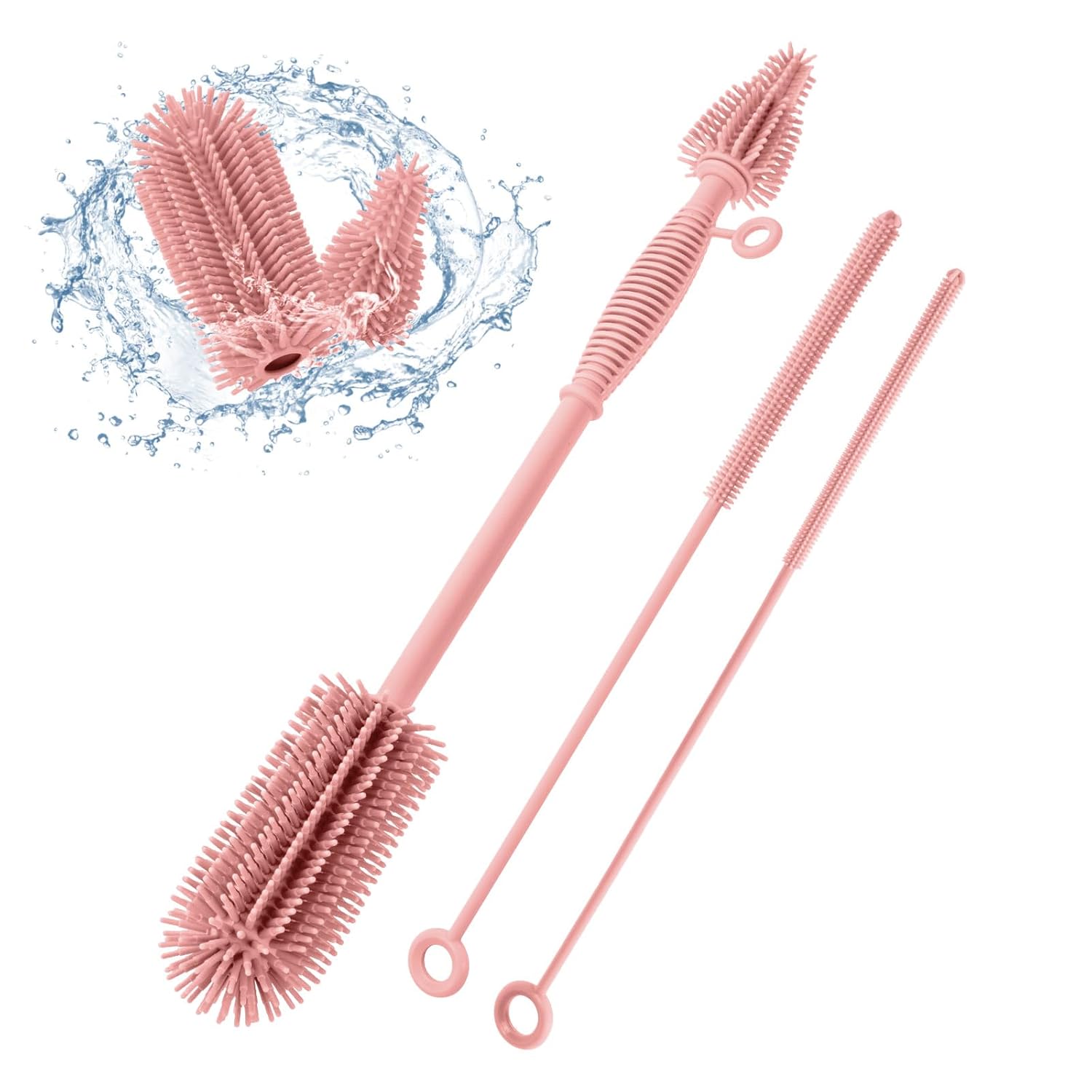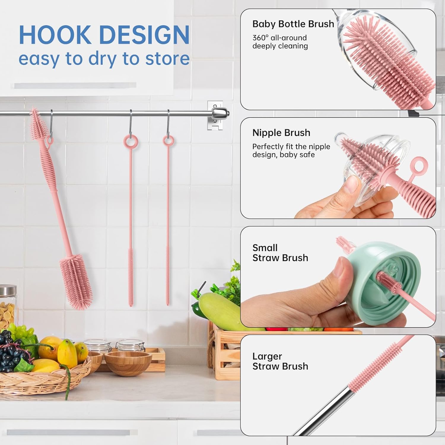 - Complete Baby Bottle Brush and Straw Cleaner Brush Set: In addition to the bottle brush, this set also includes two silicone straw cleaner brushes for complete cleaning coverage. This sturdy and flexible set reaches deep inside containers and straws for total cleanliness