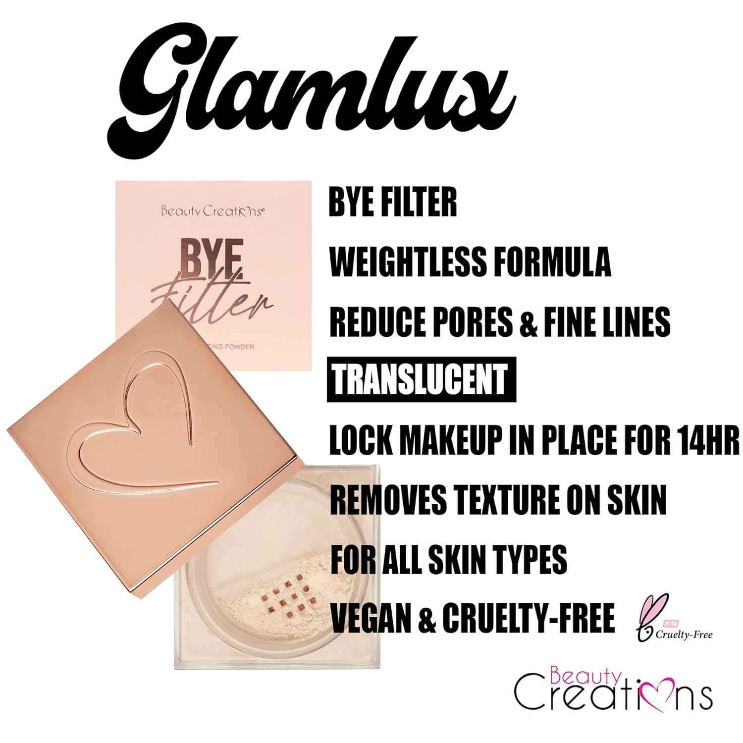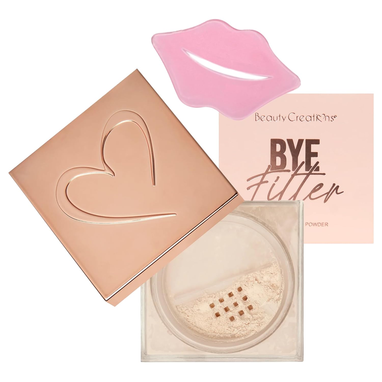 Beauty Creations Loose Setting Powder BYE Filler Translucent Loose Setting Powder Minimizes Pores and Fine Lines Matte Finish Natural Face Makeup & Pink Collagen Lip Mask