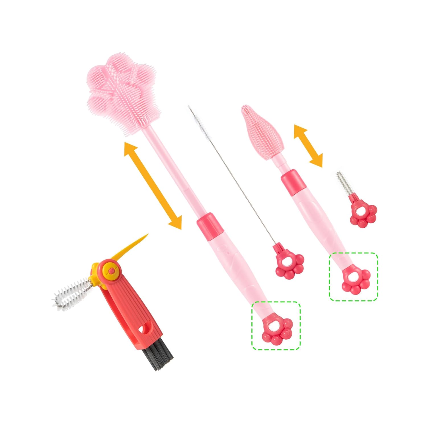 Adjustable Handle Length 10.5-13.8in Water Cup Cleaner Bottle Brush, Silicone Baby Bottle Brush, Pot Brush Cleaner, Pink
