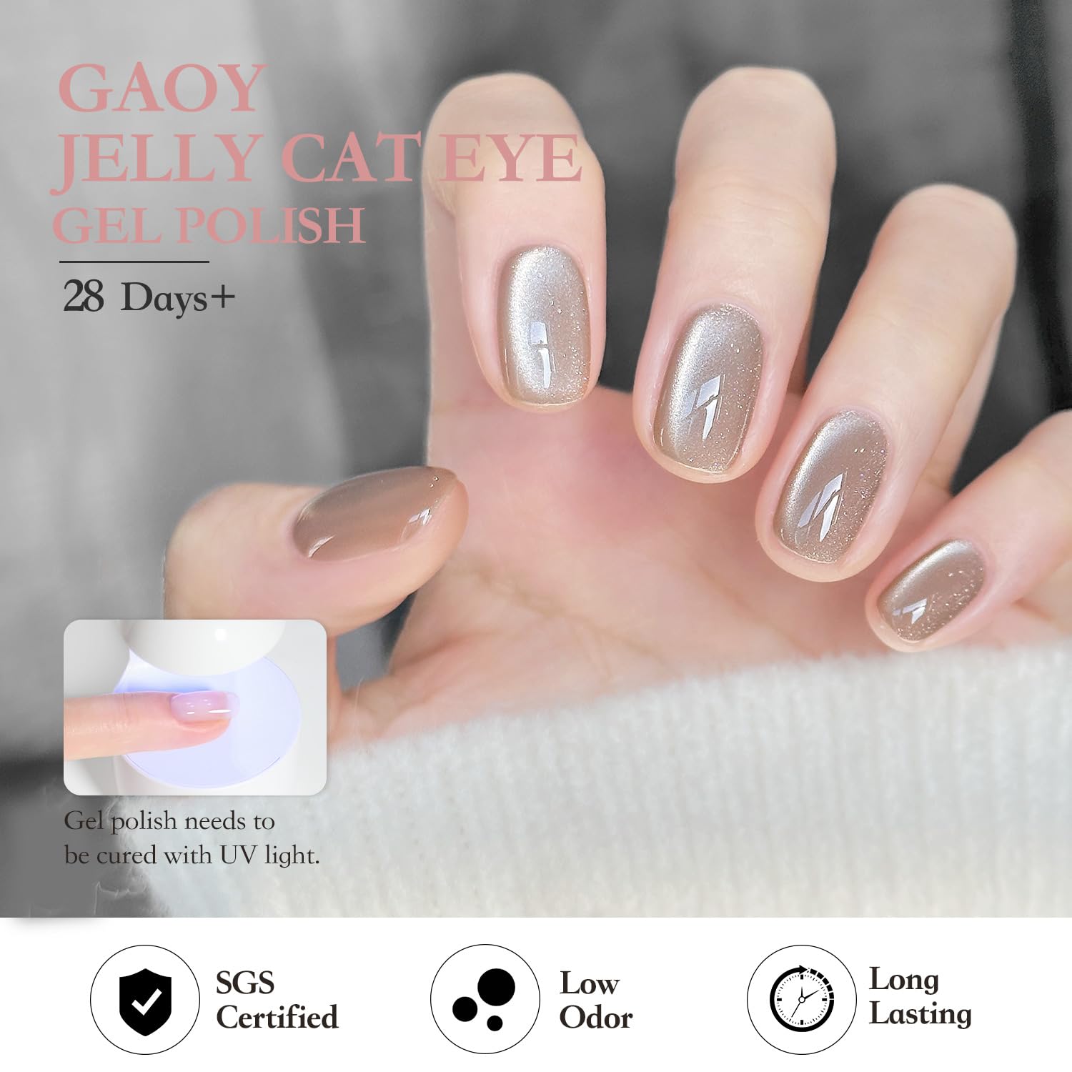 GAOY Forest Sunset Cat Eye Gel Nail Polish Set with Magnet for Holographic Cat Eye, Salon Gel Manicure and Nail Art DIY at Home