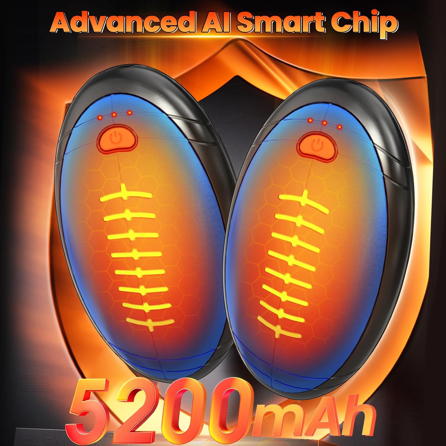 - đ„ă2025 Upgraded 2-in-1 Hand WarmerăThis hand warmes features a unique rugby shape that perfectly fits the curve of the palm, providing ultimate comfort. The hand warmer double-sided heating and buckle design that can be charged separately allows it to easily transform into a 2-in-1 hand warmer, which can be easily disassembled or combined according to your needs. Hand warmers Portable pocket design, suitable for traveling, hunting, playing golf, hiking, camping, skiing, or sharing with friends