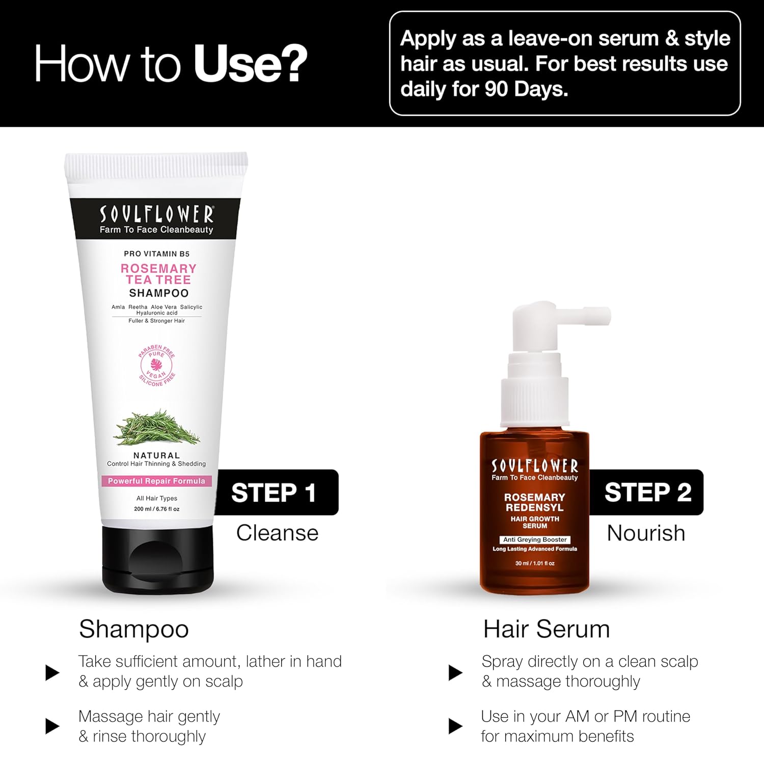 Soulflower Rosemary Redensyl Hair Growth Serum | 3% Redensyl, 4% Anagain, Melanogray, Caffeine, Biotin, Keratin, Tea Tree, Chia Seeds, Rice Water | Men, Women | 30 ml