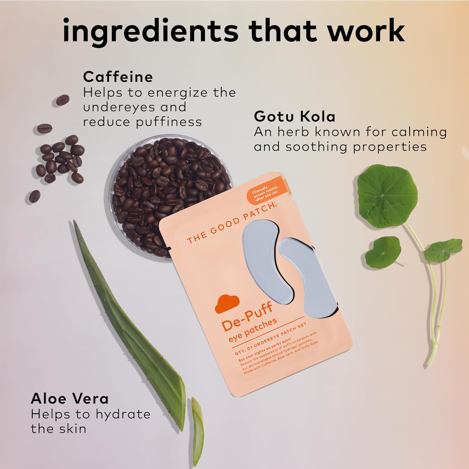 The Good Patch De-Puff Cooling Hydrogel Under Eye Patches for Puffy Eyes and Under Eye Bags, Made with Caffeine, Aloe Vera, Gotu Kola, Clinically Proven (12 Total Patch Sets)