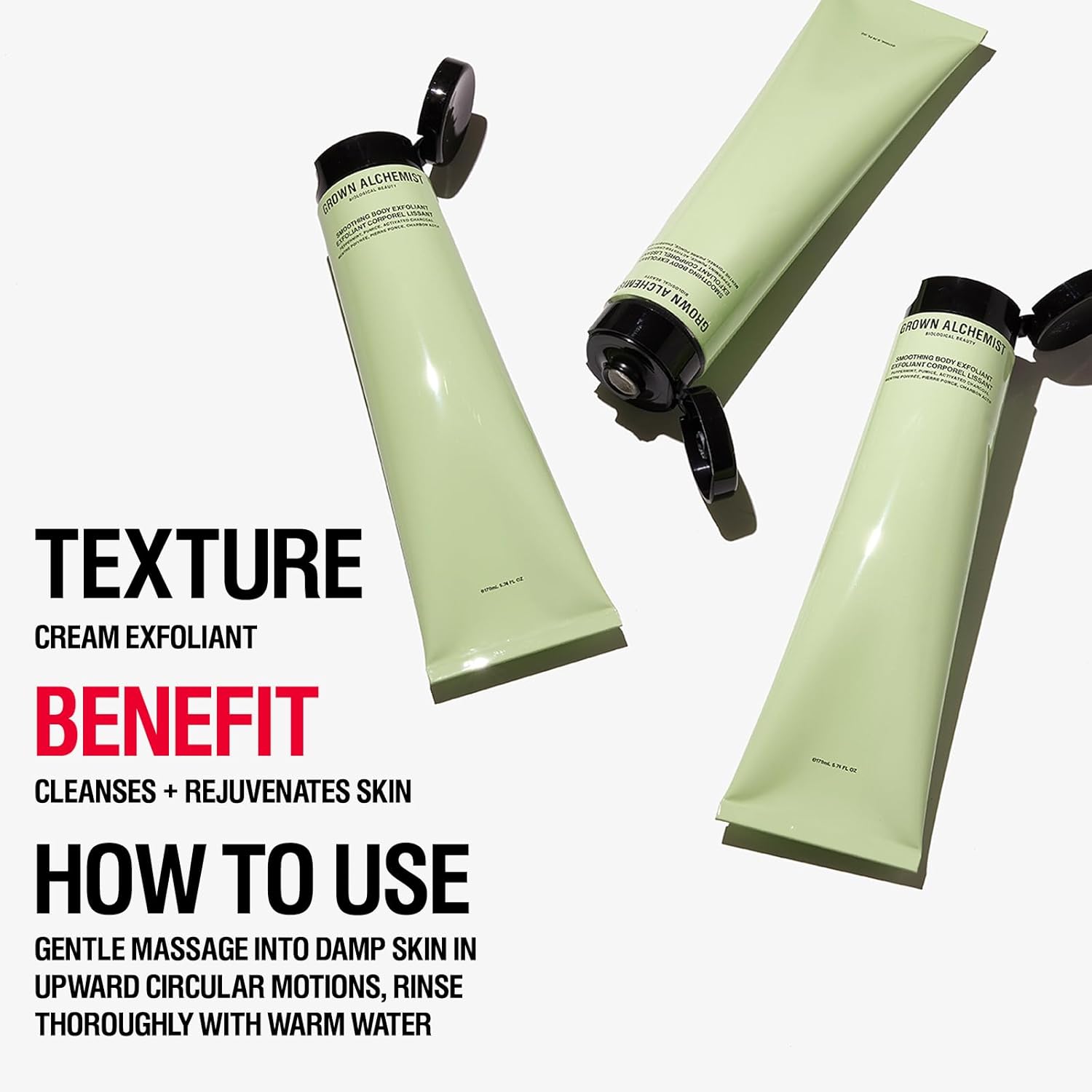 - GROWN ALCHEMIST. Body Cleanser (300ml) + Smoothing Body Exfoliant (170ml) + Intensive Body Cream (120ml) Skincare Set. Three of our skincare favorites in one value bundle