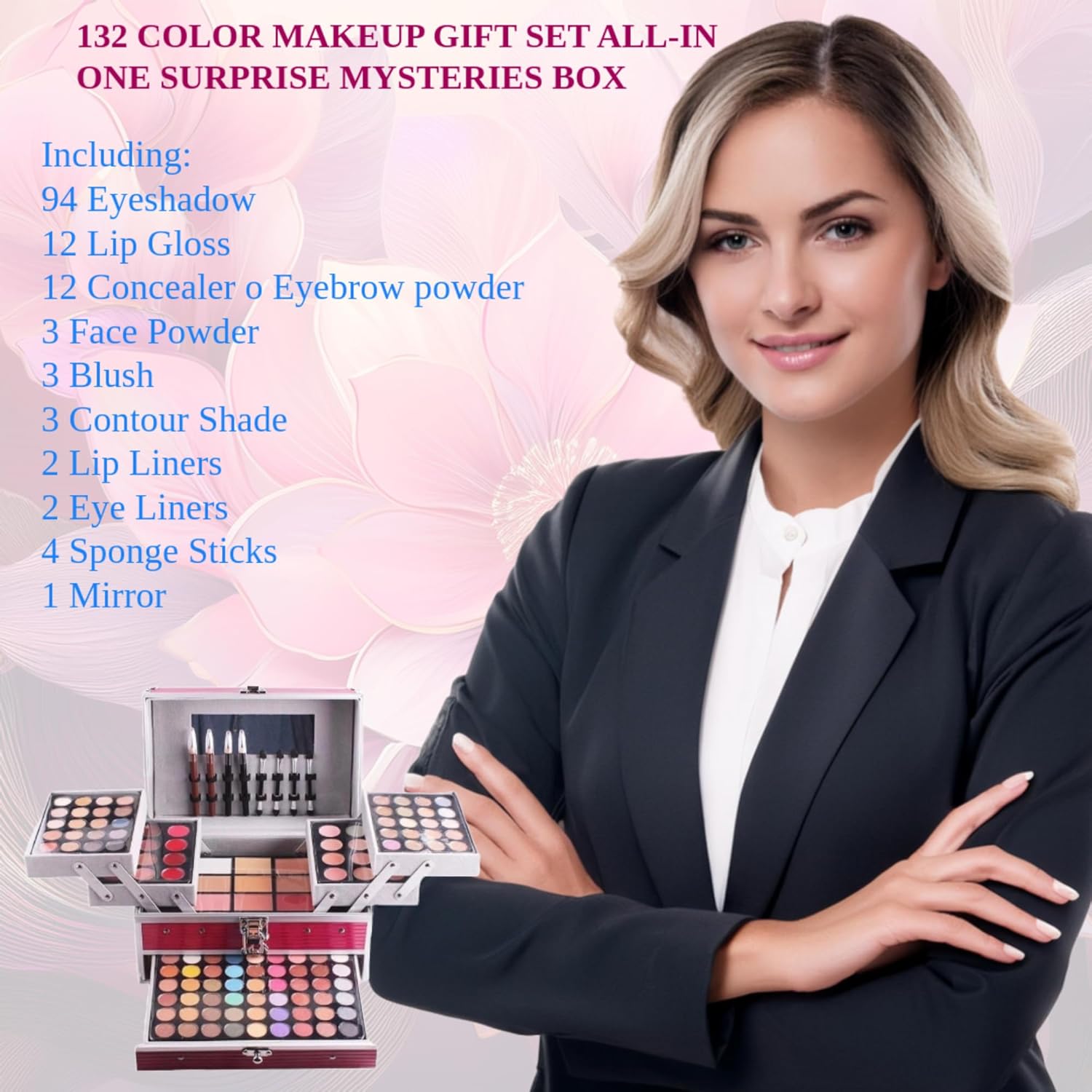 SAMIK 132-Color All-in-One Makeup Kit for Women - Complete Set with Palettes, Contouring, Concealer, Face Powder, Lipgloss, Blusher, Contour, Eyeliner, and Eyebrow Powder in Carry-All Trunk
