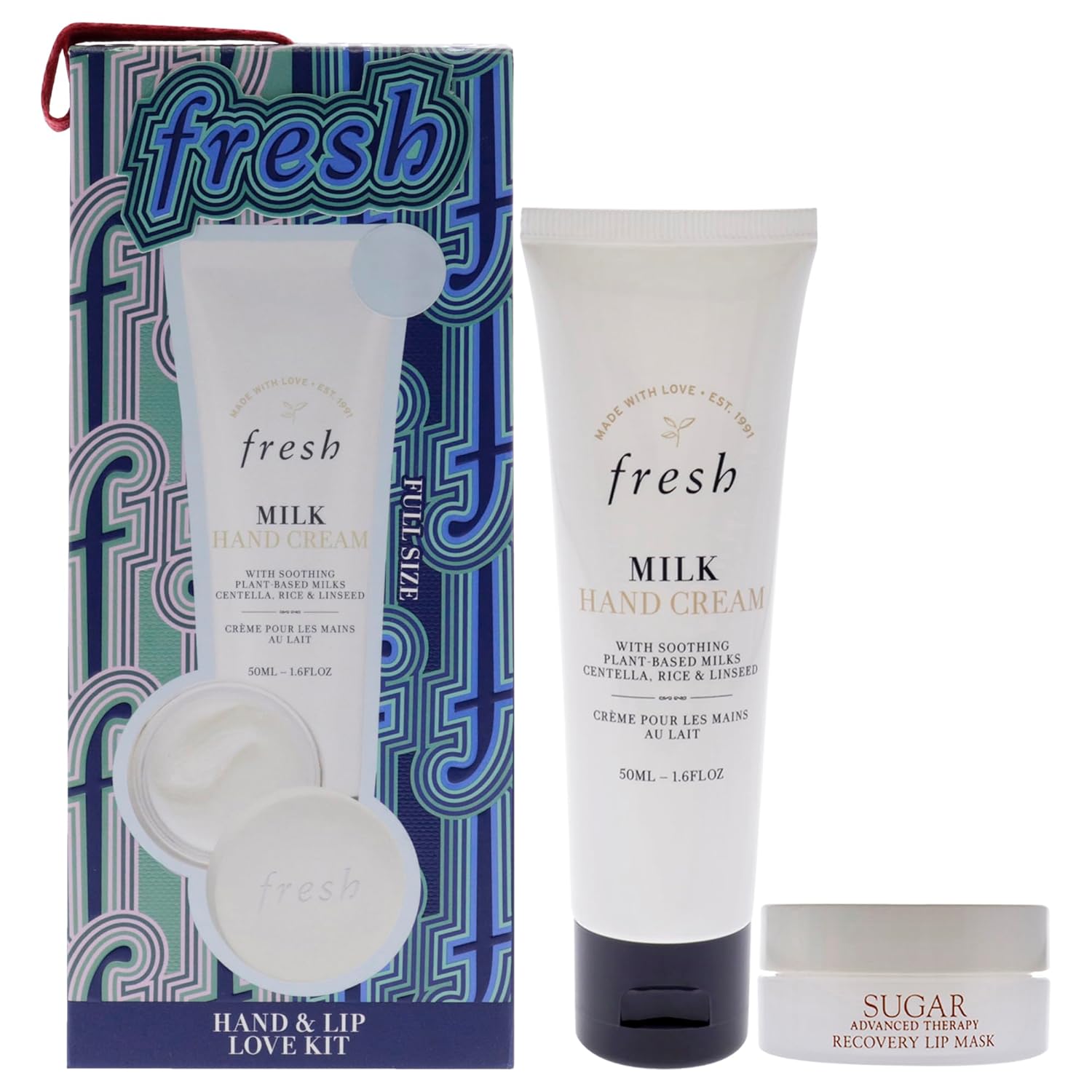 Fresh Hand And Lip Love Kit for Women - 2 Pc 1.6oz Milk Intensive Hand Cream, 0.3oz Sugar Recovery Lip Mask Advanced Therapy