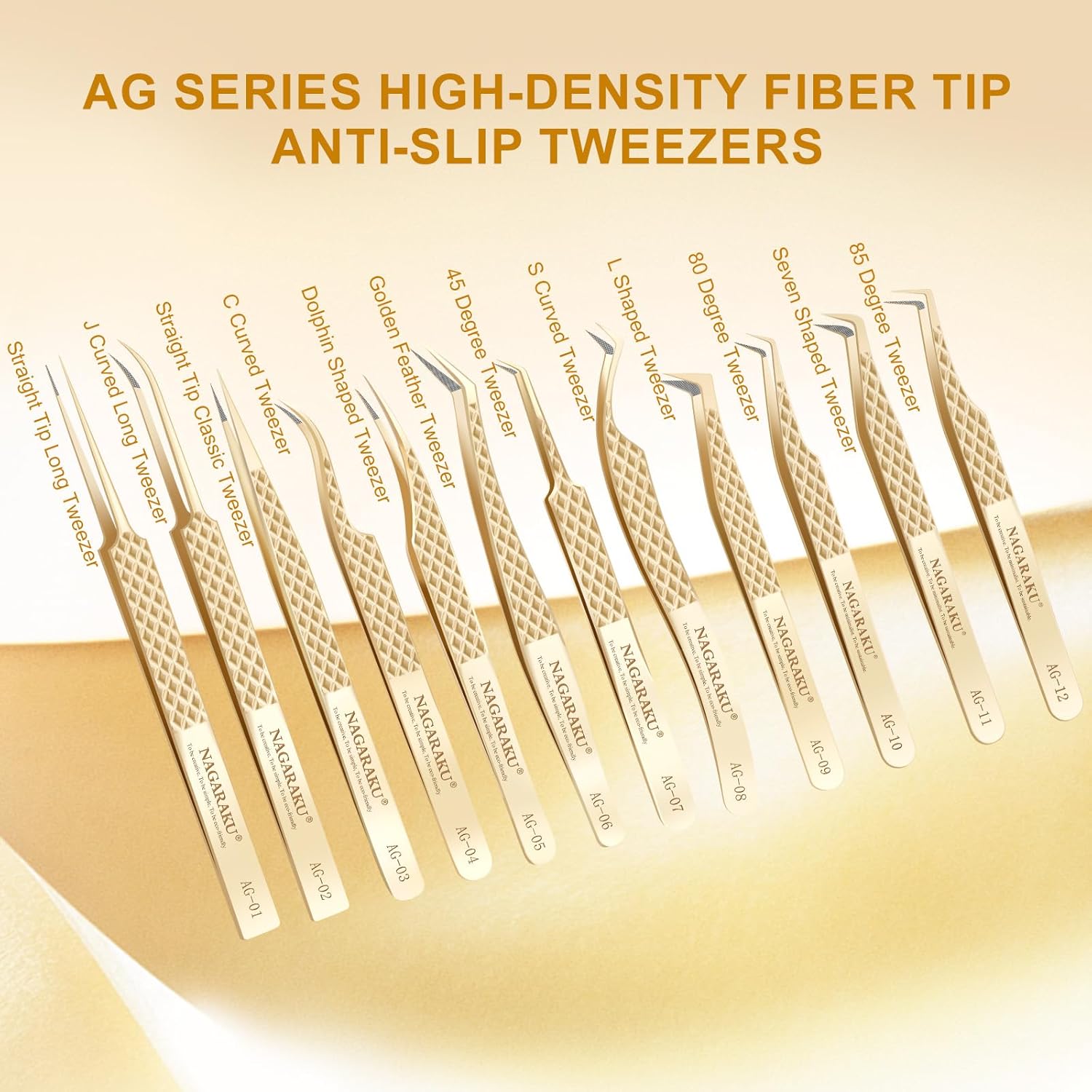 NAGARAKU 1 Pair Precision Fiber Tip Tweezer for Eyelash Extensions Professional Eyelash Tweezers Antistatic Straight & Curved Tip Tweezers with Box(Isolation & Volume Lash Tweezers AG-03 & AG-07)