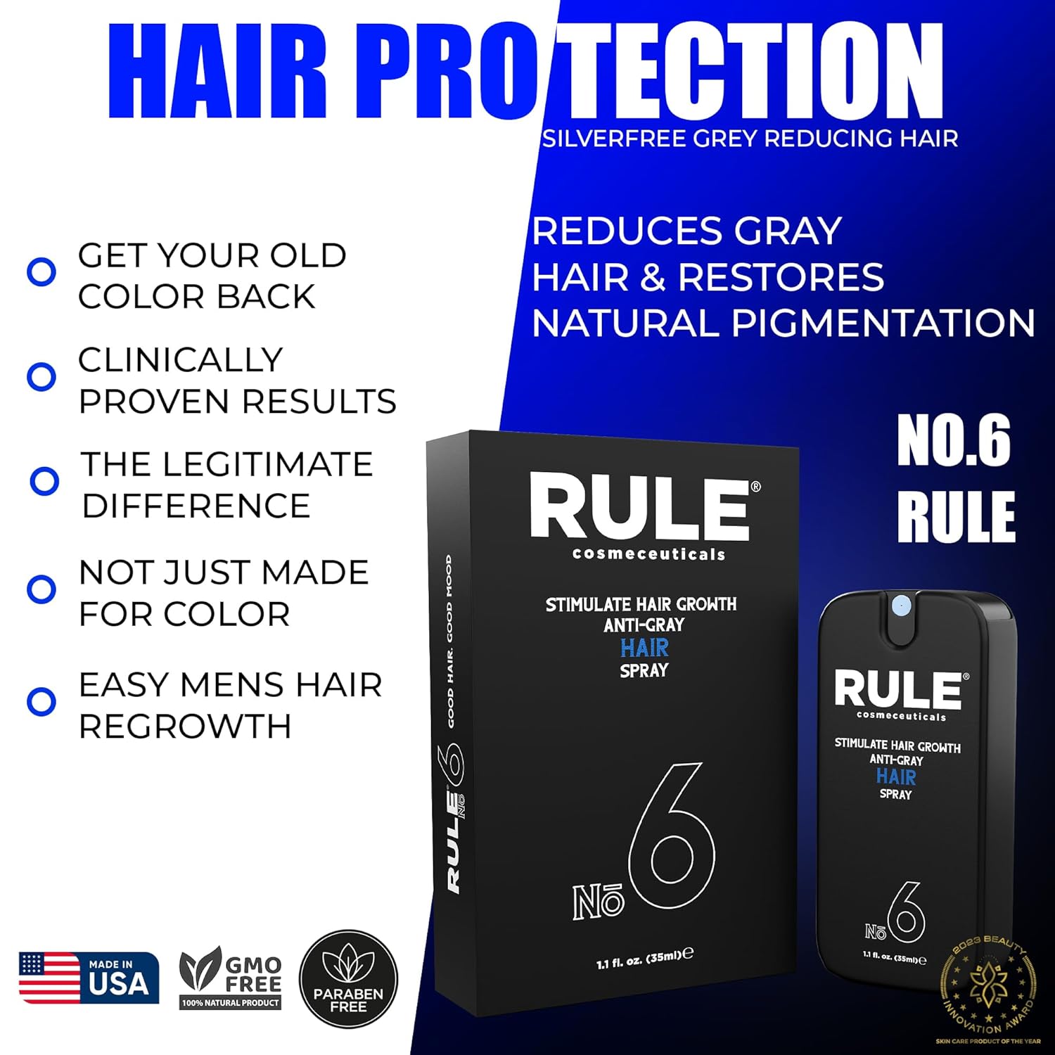 - GET YOUR OLD COLOR BACK without hair dye. RULE’s trailblazing Hair Growth Anti Gray Hair Treatment Spray is designed for the color renewal and rapid hair growth men have been waiting for