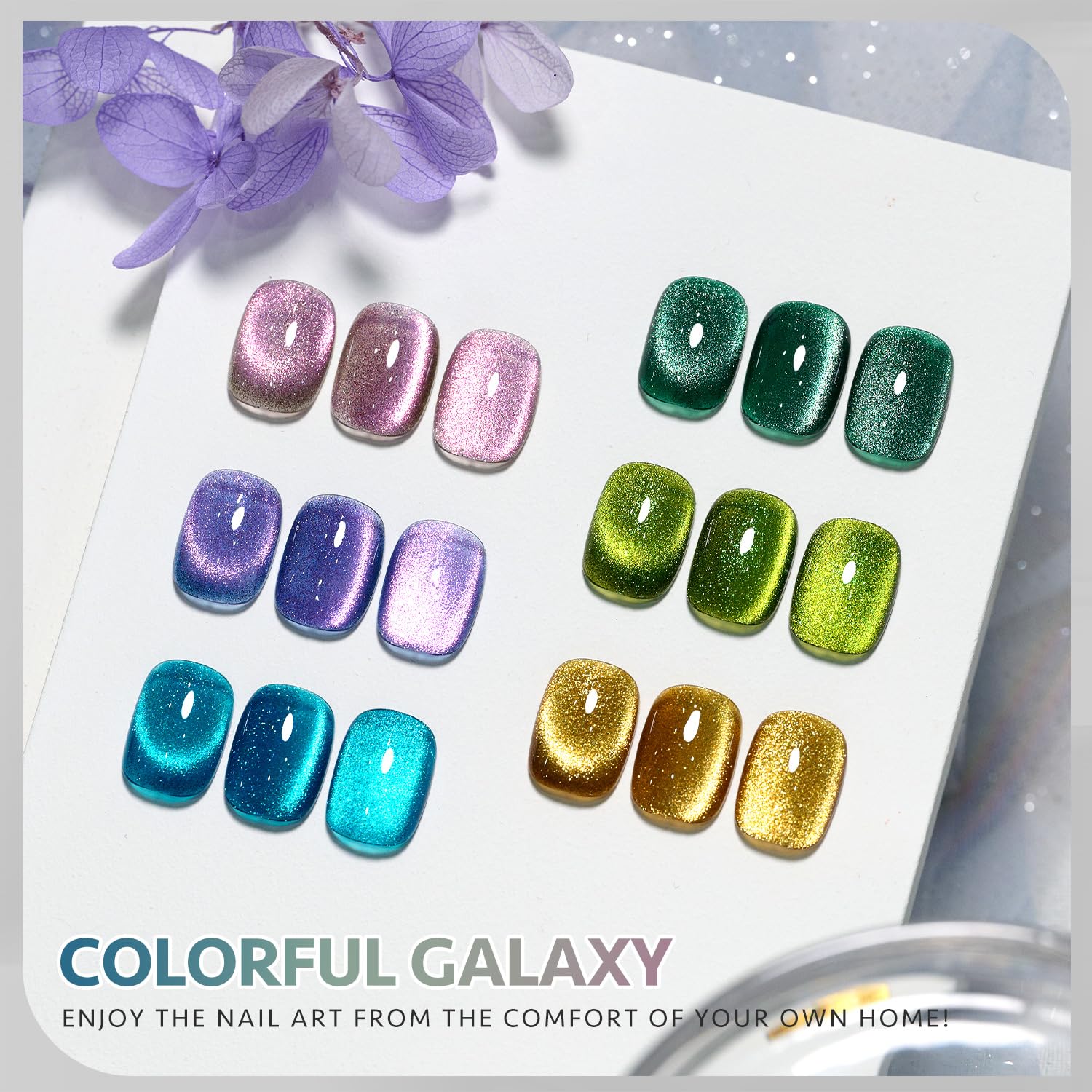 GAOY Glitter Cat Eye Gel Nail Polish Set with Magnet Colorful Galaxy for Holographic Cat Eye, Salon Gel Manicure and Nail Art DIY at Home