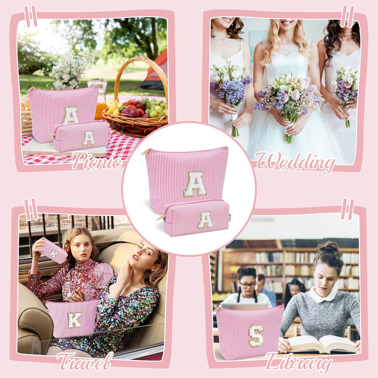 YOOLIFE Personalized Initial Makeup Bag for Women | Pink Cosmetic Travel Toiletry Bag | 11 12 13 14 15 16 Years Old Girl Gifts | Preppy Stuff Teen Girl Gift Trendy Stuff A