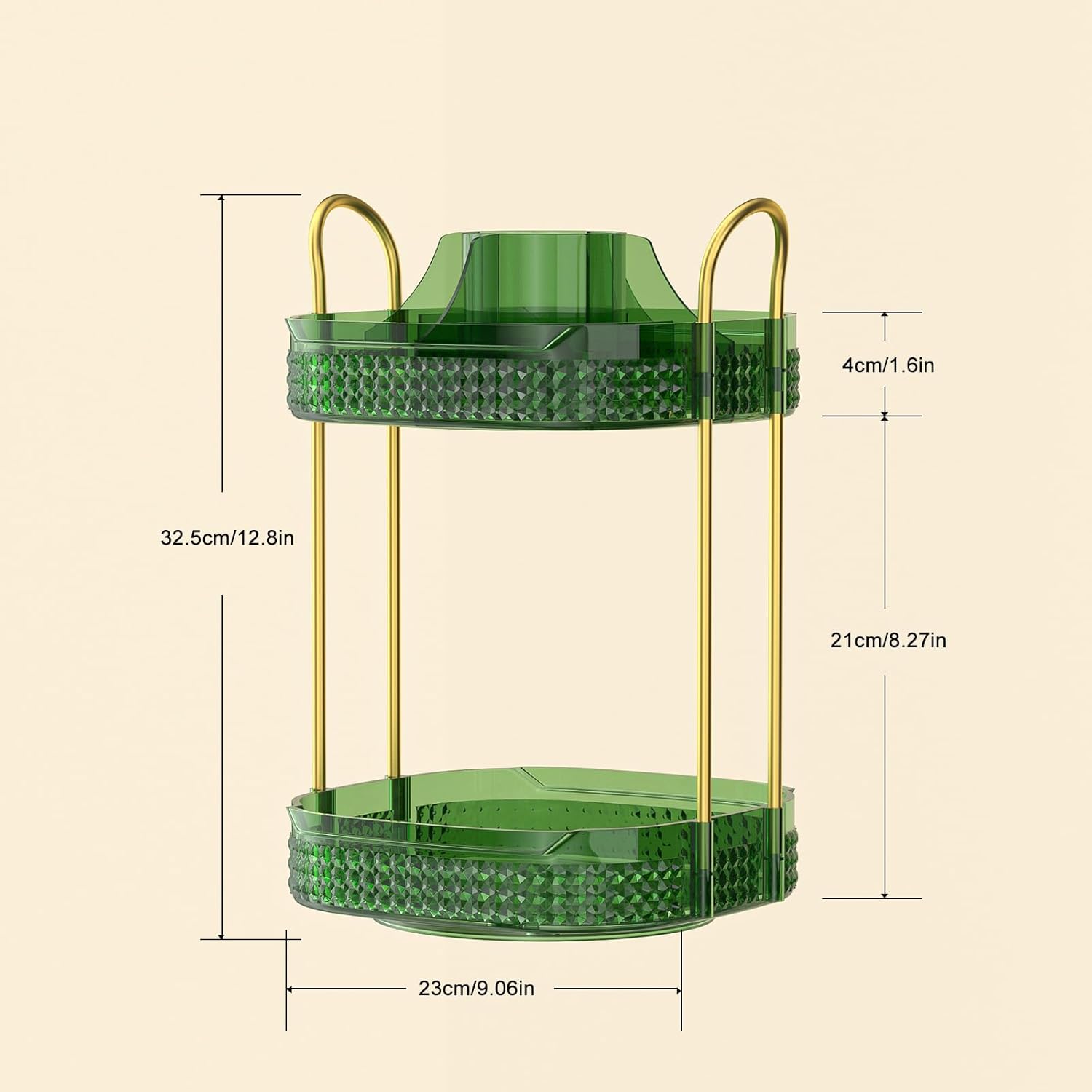 360° Rotating Makeup Organizer 2 Tier, Large Skincare Clear Make Up Storage Spinning Perfume Organizers for Bathroom Counter Dresser, Green