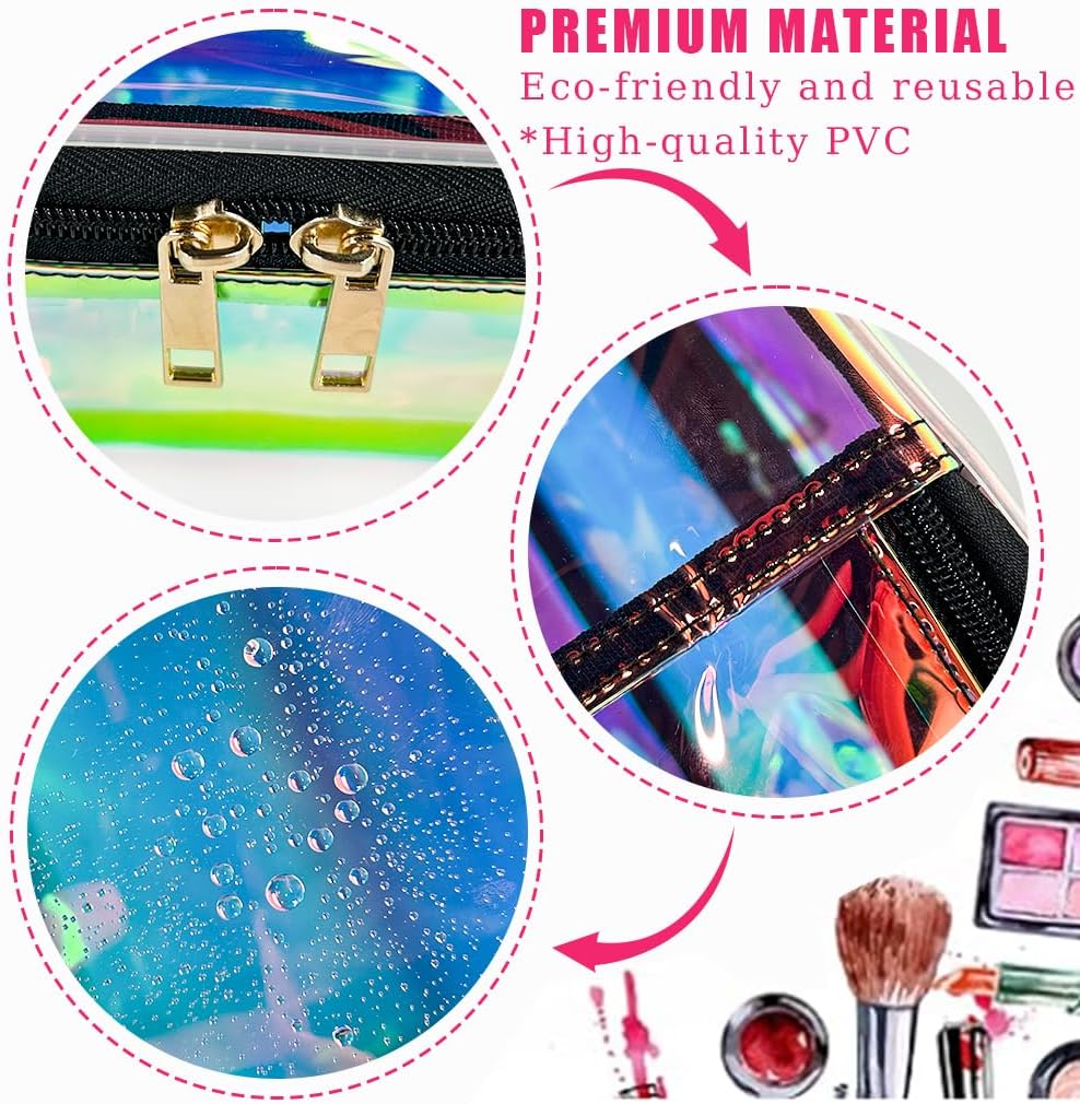 - đ·ăPortable and StylishăOur portable holographic makeup bag is 20x14x8cm/7.87x5.51x3.15inches,lightweight and durable.Transparent material allows for easy visibility of internal items.Convenient for you to quickly find and retrieve items,bringing you more convenience