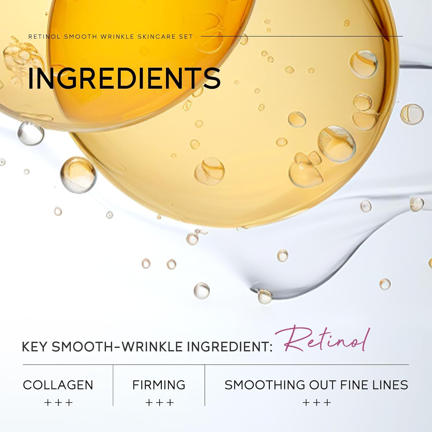 - 【Dark Spot Remover for Face】1% Retinol Facial Serum (1.06 fl oz): Smooths wrinkles, reduces roughness, and tightens skin for a youthful appearance. Anti Aging Eye Cream (0.53 oz): Firms delicate eye skin with low molecular weight hyaluronic acid, caffeine, and tea extract for enhanced radiance. Anti Wrinkle Facial Moisturizer (1.06 oz): Improves skin elasticity, balances sebum production, and promotes smoother skin texture.