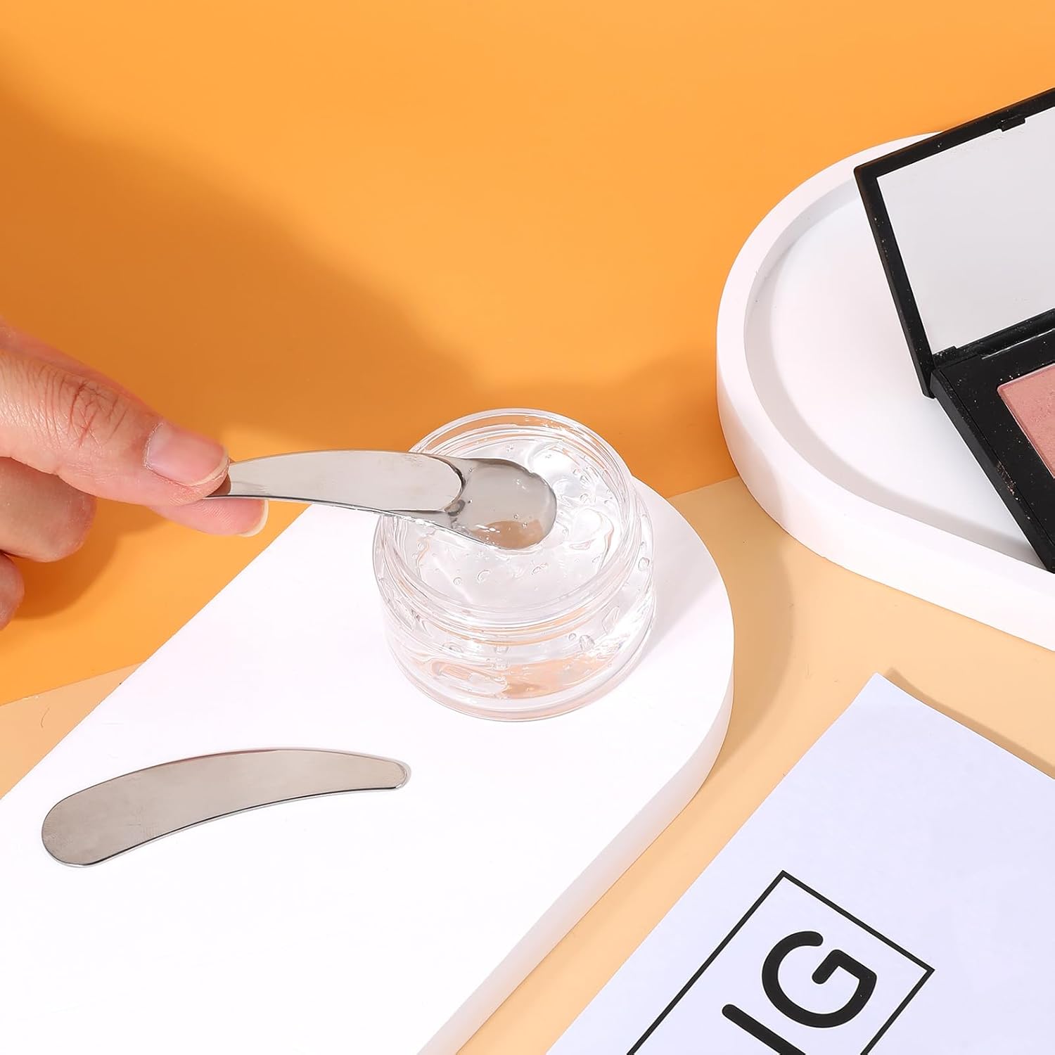 - ăPerfect for SkincareăThe skincare spatula is designed to scoop and apply creams, lotions, and serums hygienically, reducing the risk of contamination and ensuring precise application for optimal results.