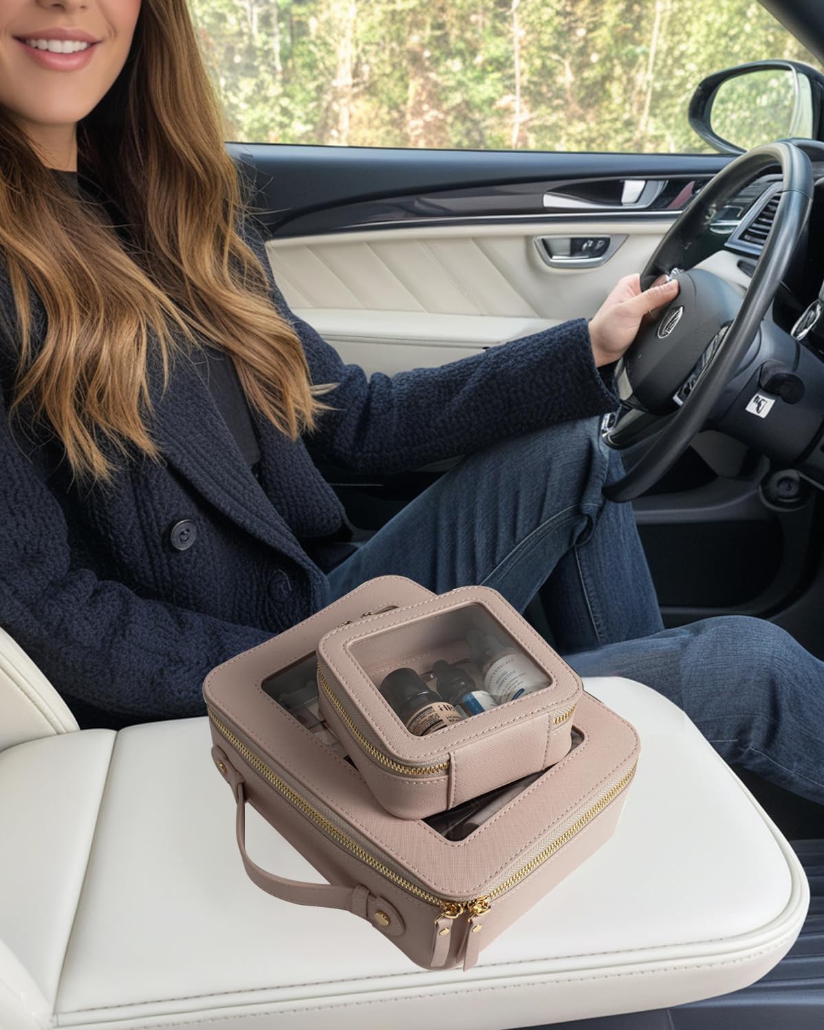 - Car Must Have Essential: The car organizer is roomy to store your makeup, makeup brushes, lipstick, cosmetics, foundation, skin care, cables, chargersor and other items. It can be a good car accessory fits in the center console or other parts of your car