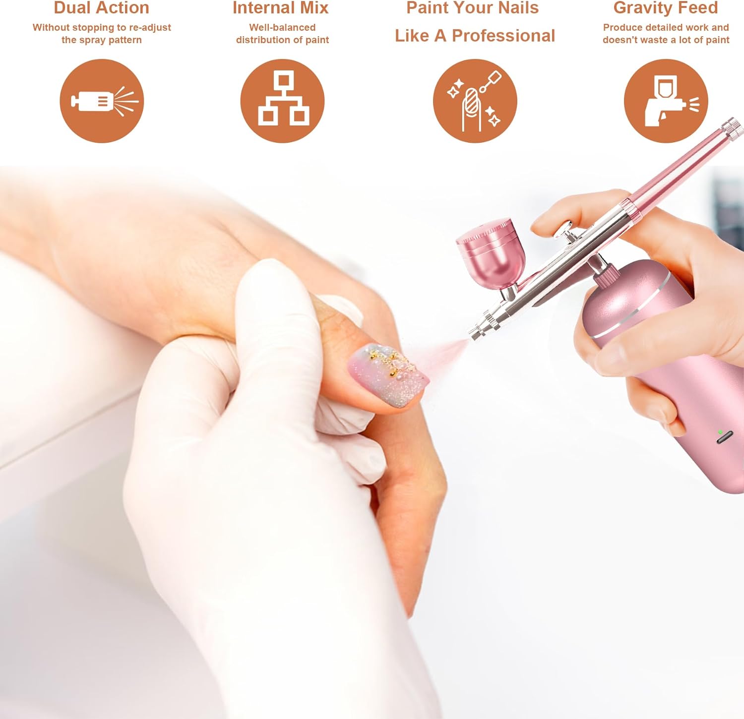 Airbrush Kit with Compressor - 48PSI High-Pressure, Non-Clogging Air Brush Set Cordless Rechargeable with 0.3mm Nozzle and Cleaning Brush for Nail Art, Makeup, Painting, and Cake Decorating