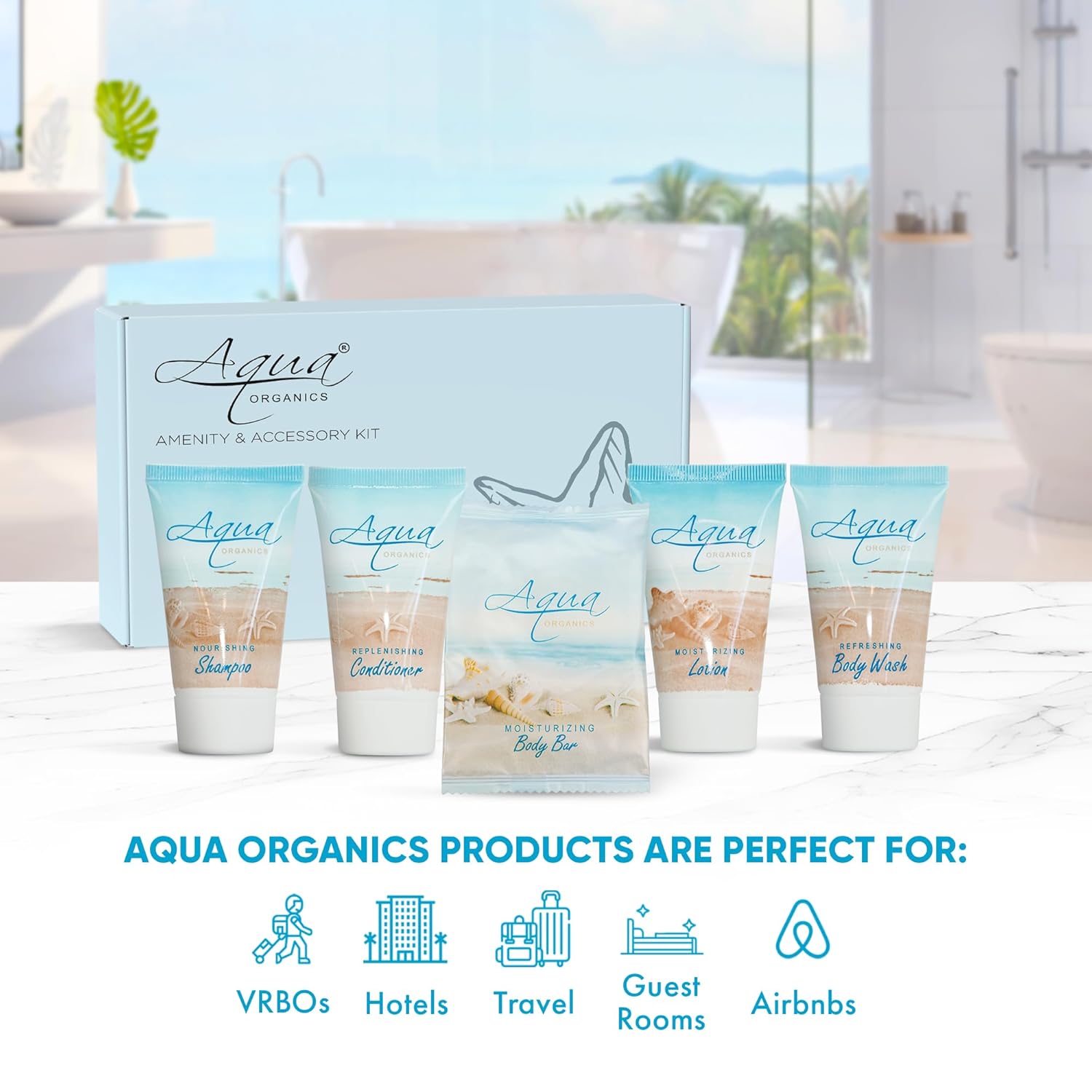 Aqua Organics Amenity Kit|Boxed Hotel Toiletries|Bulk Set 1 oz Travel Size Shampoo, Conditioner, Lotion, Body Wash & Bar Soap for Guest Hospitality AirBnB/Vacation Rentals|300 Pieces
