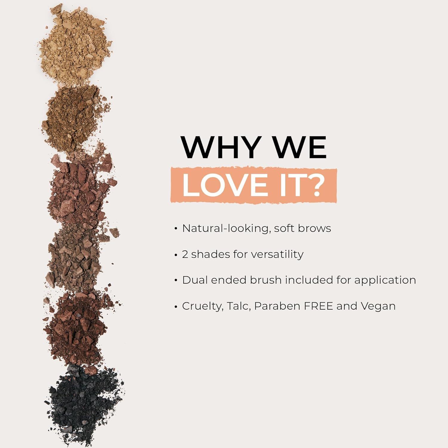 Soft Brow Define & Fill Powder Duo, Includes Dual ended Brush, Vegan and Cruelty Free (Black/Brown)