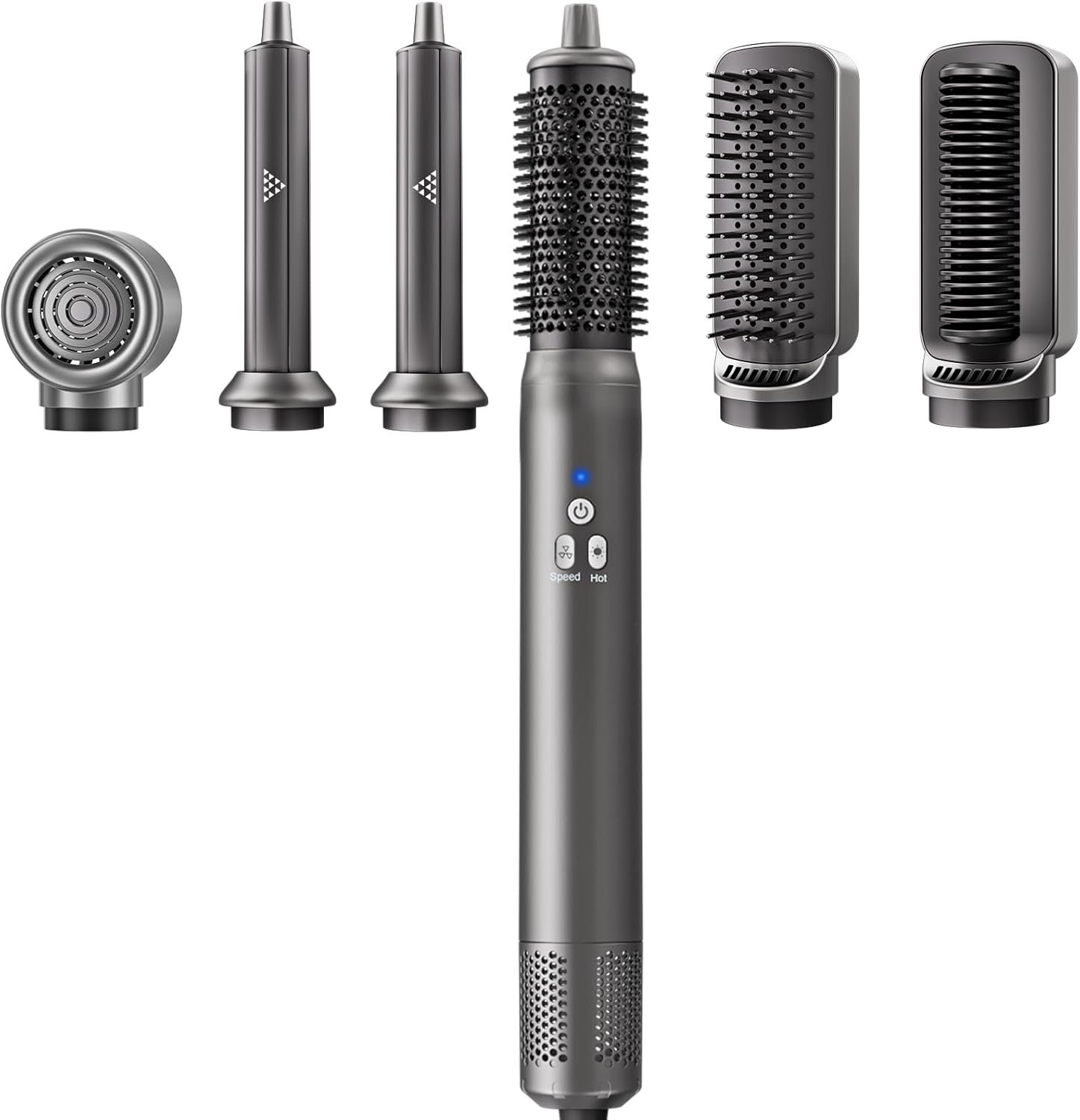 6 in 1 Air Styling & Drying System, Powerful High Speed Hair Dryer Brush & Multi-Styler with Auto Wrap Curlers,Hair Straightener Brush,Round Volumizing Brush,Soft Smoothing Brush