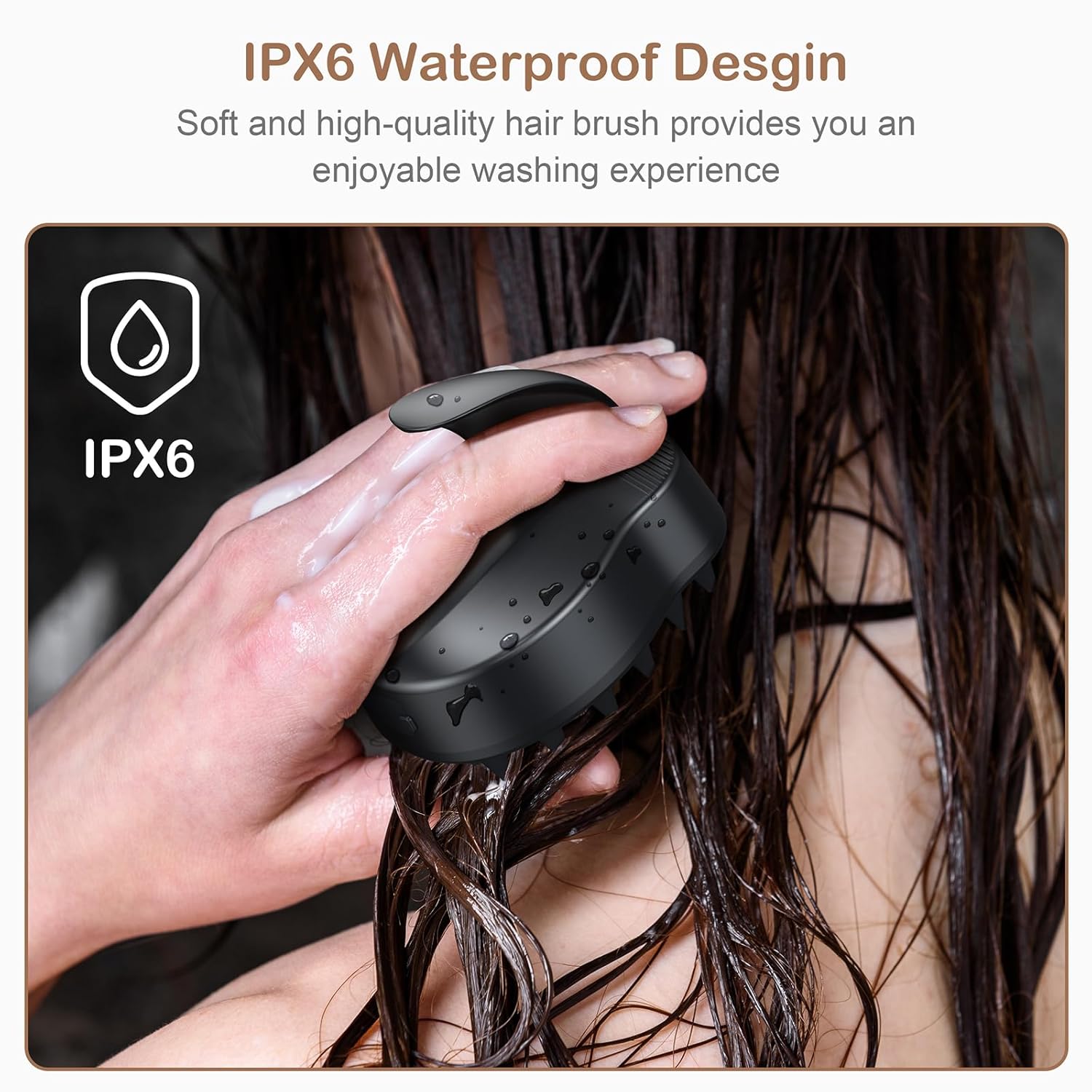 Electric Scalp Massager Hair Growth Brush with Soft Silicone Bristles,Head Scalp Massager for Relax,3-Level Vibration,IPX6 Waterproof for Hair Growth & Dandruff Removal Mothers Day Gifts(Black)