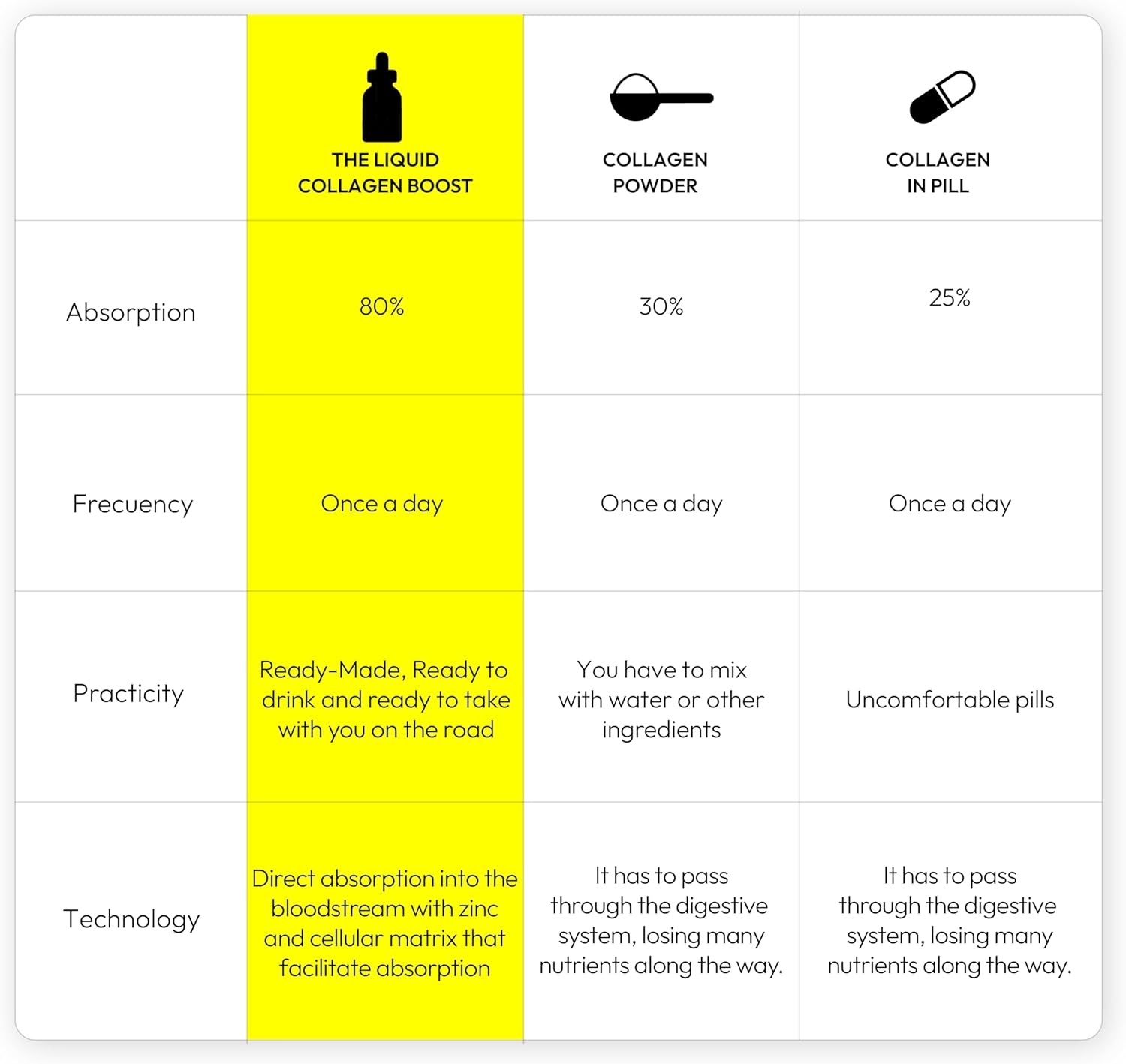 - Fast-Absorbing Liposomal Collagen & Biotin Liquid for Women On-the-Go Travel-friendly, fast-acting liquid collagen drops for men and women. One daily dose supports overall beauty, wellness, and skin hydration with Hyaluronic Acid, Liposomal Collagen, and Biotin.