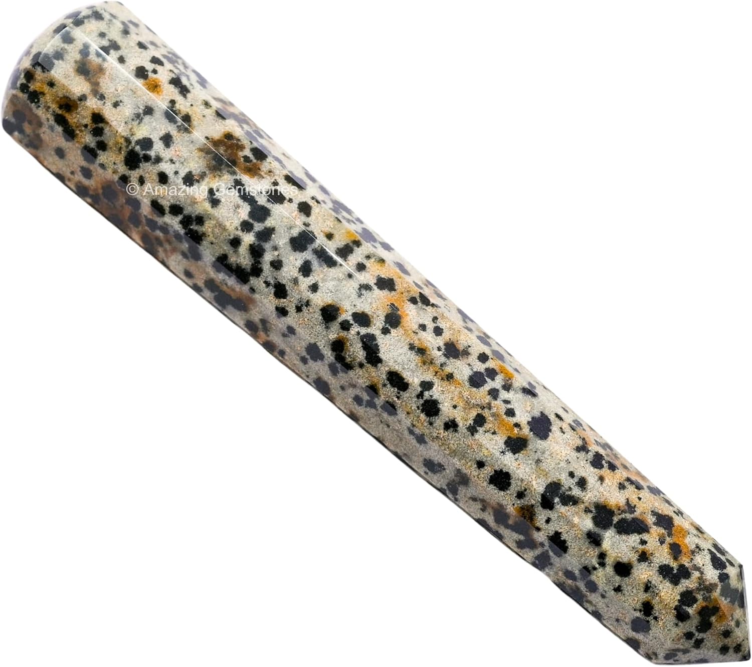 Amazing Gemstone Dalmatian Jasper Crystal Wand Massage Stick - Pelvic Wand Gua Sha for Adults - Crystals and Healing Stones Massage Wands for Adults Gifts (Pointed)