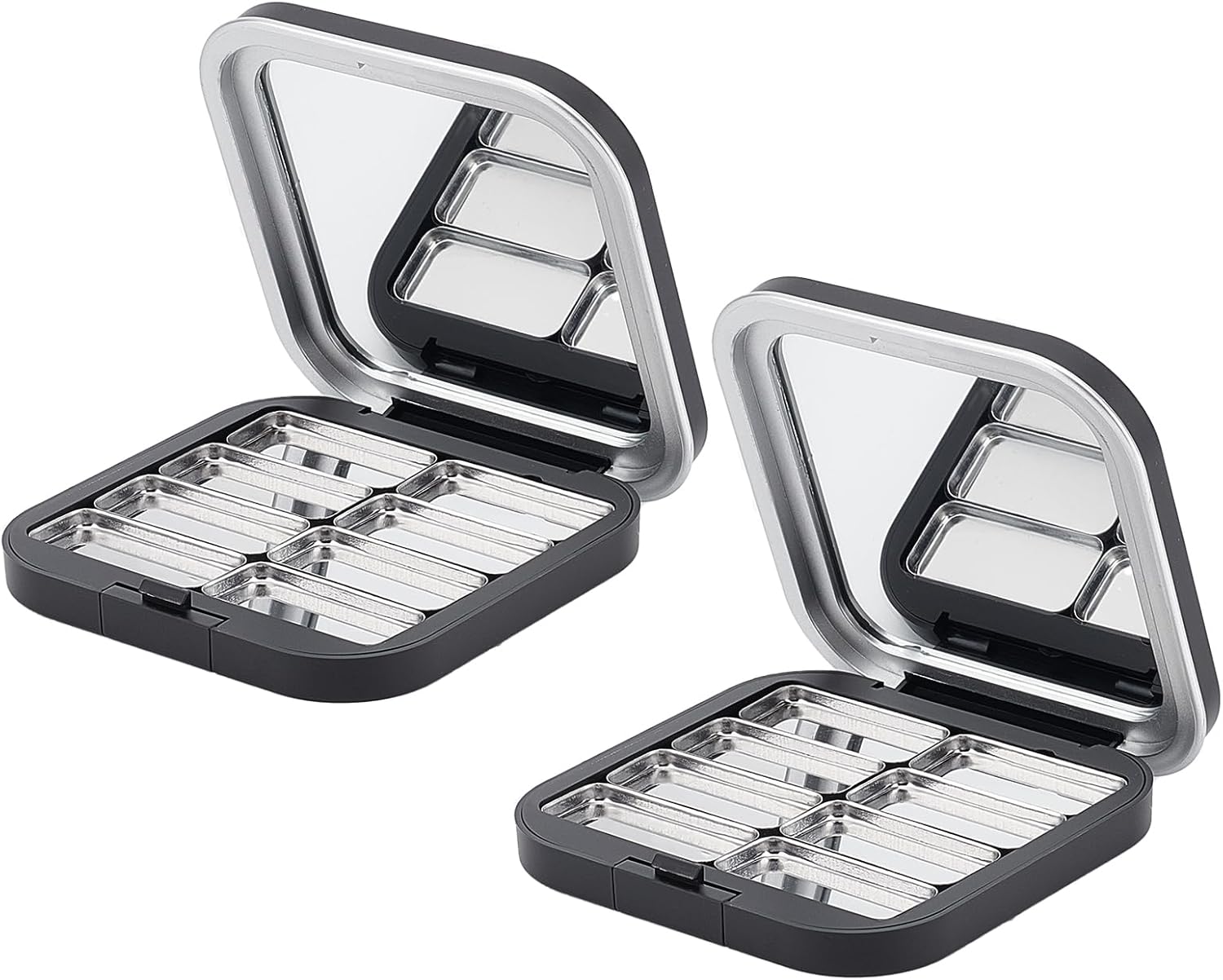 NICENEEDED 2 Pcs Empty Eyeshadow Palettes, 8 Grids Blush Pallet Makeup, DIY Eye Shadow Pigment Holder Case Refillable Cosmetic Sample Makeup Storage Box for Women
