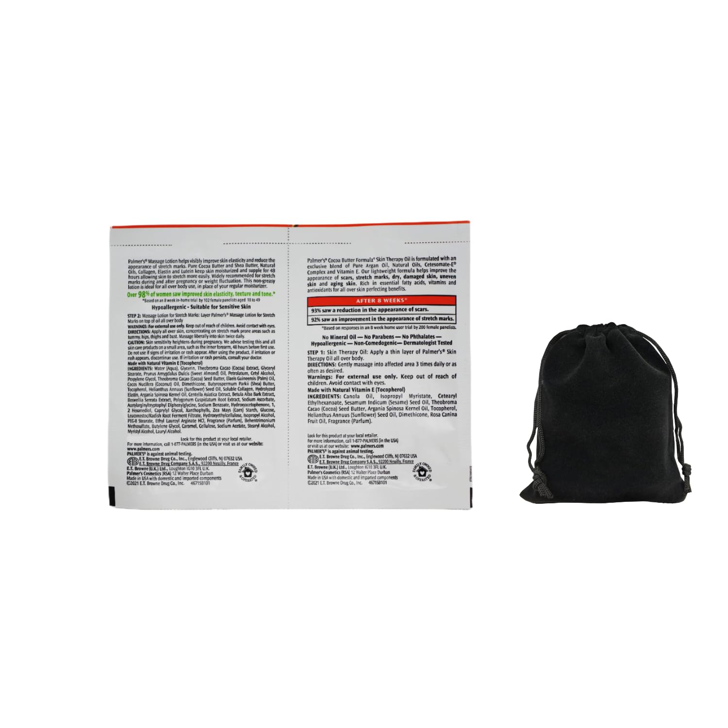 Palmer's Cocoa Butter Formula Skin Therapy Oil and Massage Lotion for Stretch Marks, Travel Pack, 0.68 FL OZ, Intensive Hydration, Skin Elasticity, Pregnancy Safe, Paraben-Free, 20 CT, W/Travel Pouch