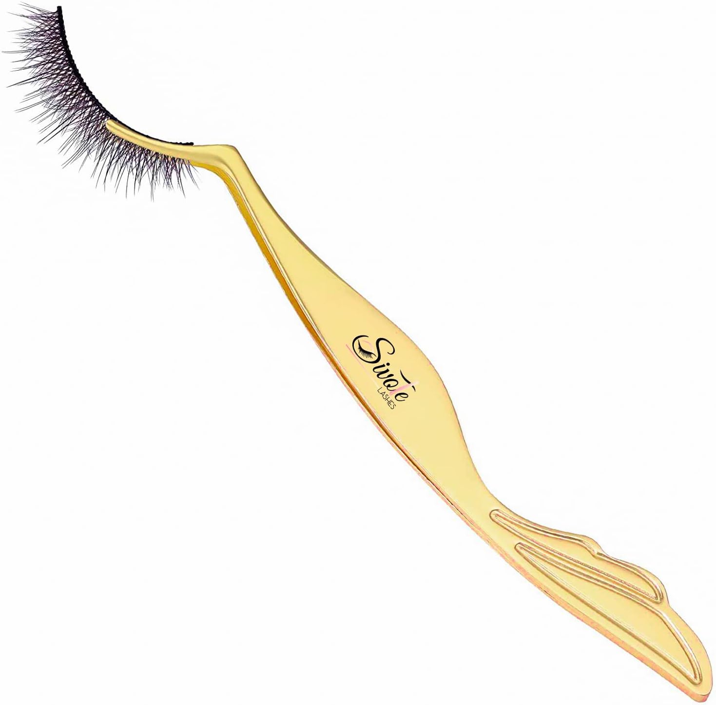 SIVOTE Lash Tweezers & Applicator Tool Set, 2-Pack Precision Tweezers (Straight & Curved Tip, Pink) with Gold Eyelash Applicator Tool for Extensions & False Lash Application