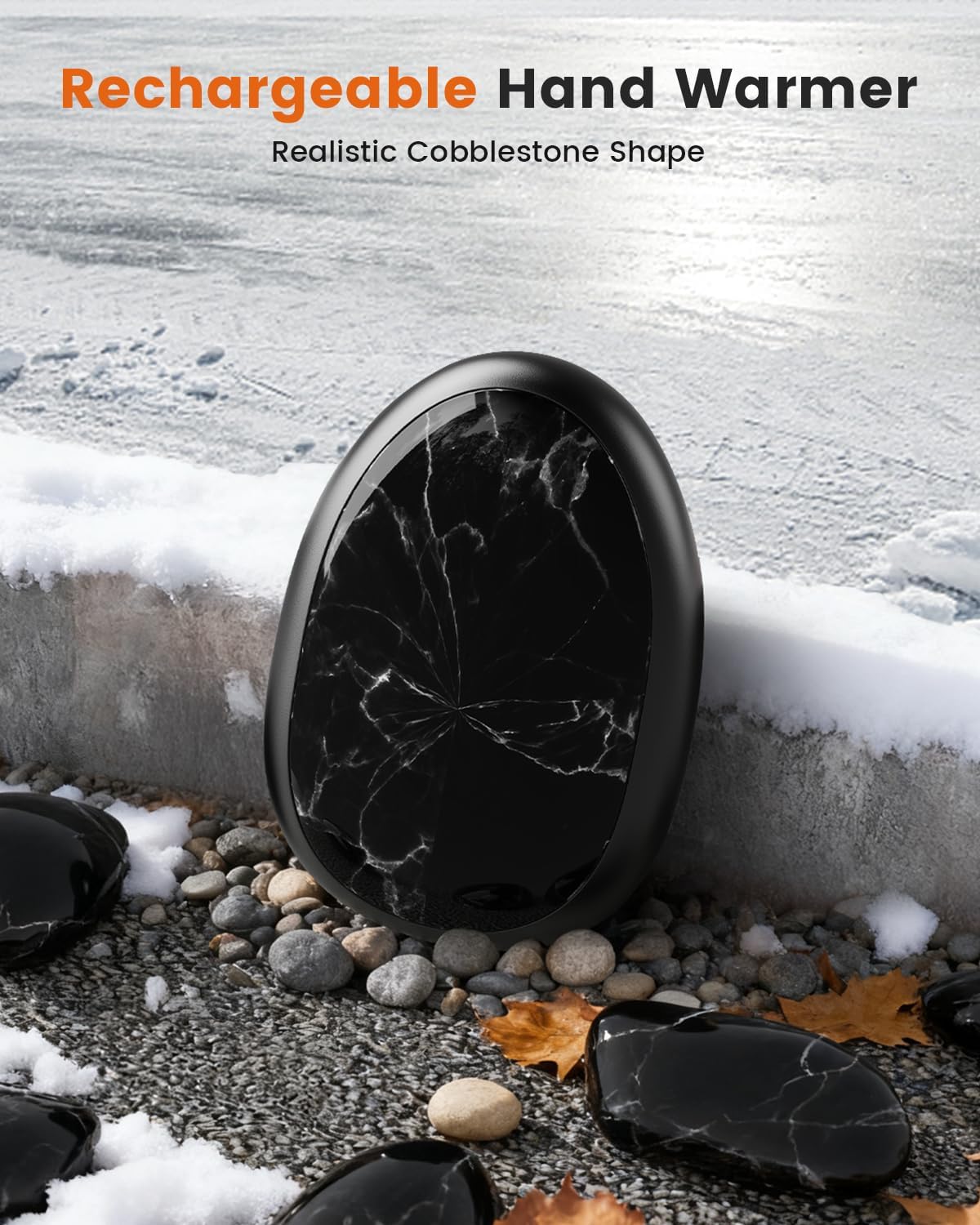 Hand Warmers Rechargeable 2 Pack, AI Temperature Control Electric Handwarmers, Stone Shape Portable Pocket Heater, Great Gift for Christmas Hunting, Golf, Camping Black