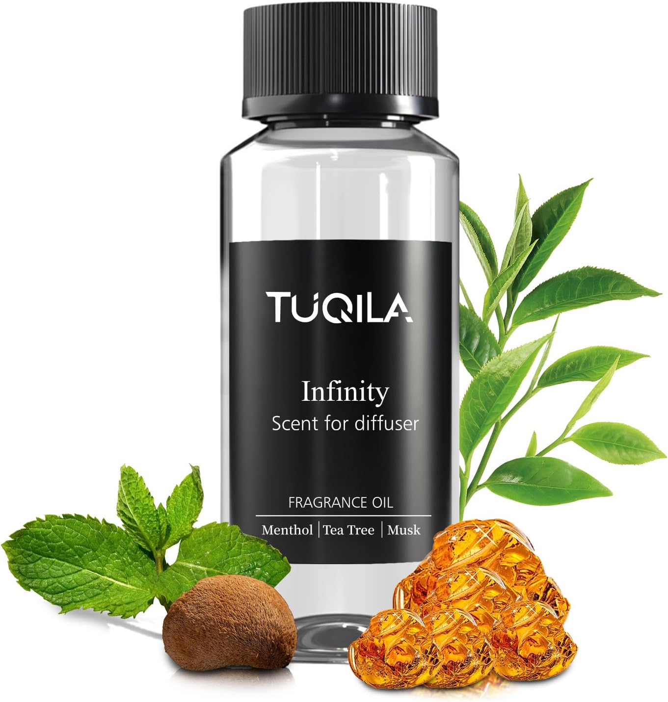 - Long-Lasting Scent Oil: INFINITY's revitalizing diffuser oil blend awakens your senses with its crisp, sophisticated aroma-opening with an invigorating burst of fresh air and cooling menthol, transitioning to the cleansing purity of eucalyptus and tea tree, before settling into a warm, comforting embrace of musk and amber. This masterfully crafted fragrance creates an instantly uplifting atmosphere that lasts