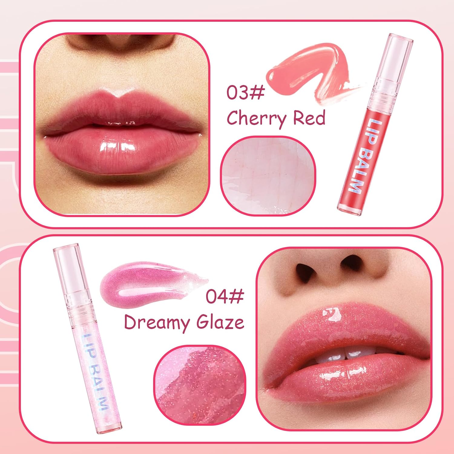 4 Pcs Shiny Lip Gloss Set,Non-sticky Long Lasting Moisturizing Lip Glow Oil Makeup Set with 2 Aloe Vera Color Changing Lipsticks for Women,Tinted Lip Balm & Lip Plumping Lip Gloss Set