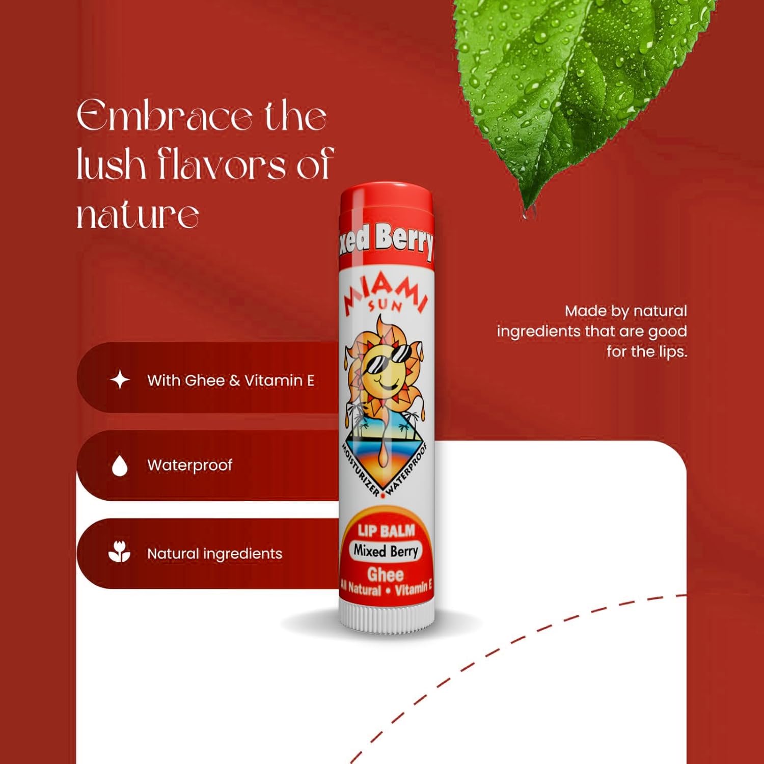 Miami Sun Natural Ghee Lip Balm, Hydrating Lip Treatment with Shea Butter & Beeswax, Organic & Non-Toxic, Best for Dry, Chapped Lips - Moisturizing, Healing & Chemical-Free (Gift of 2, Mixed Berry)