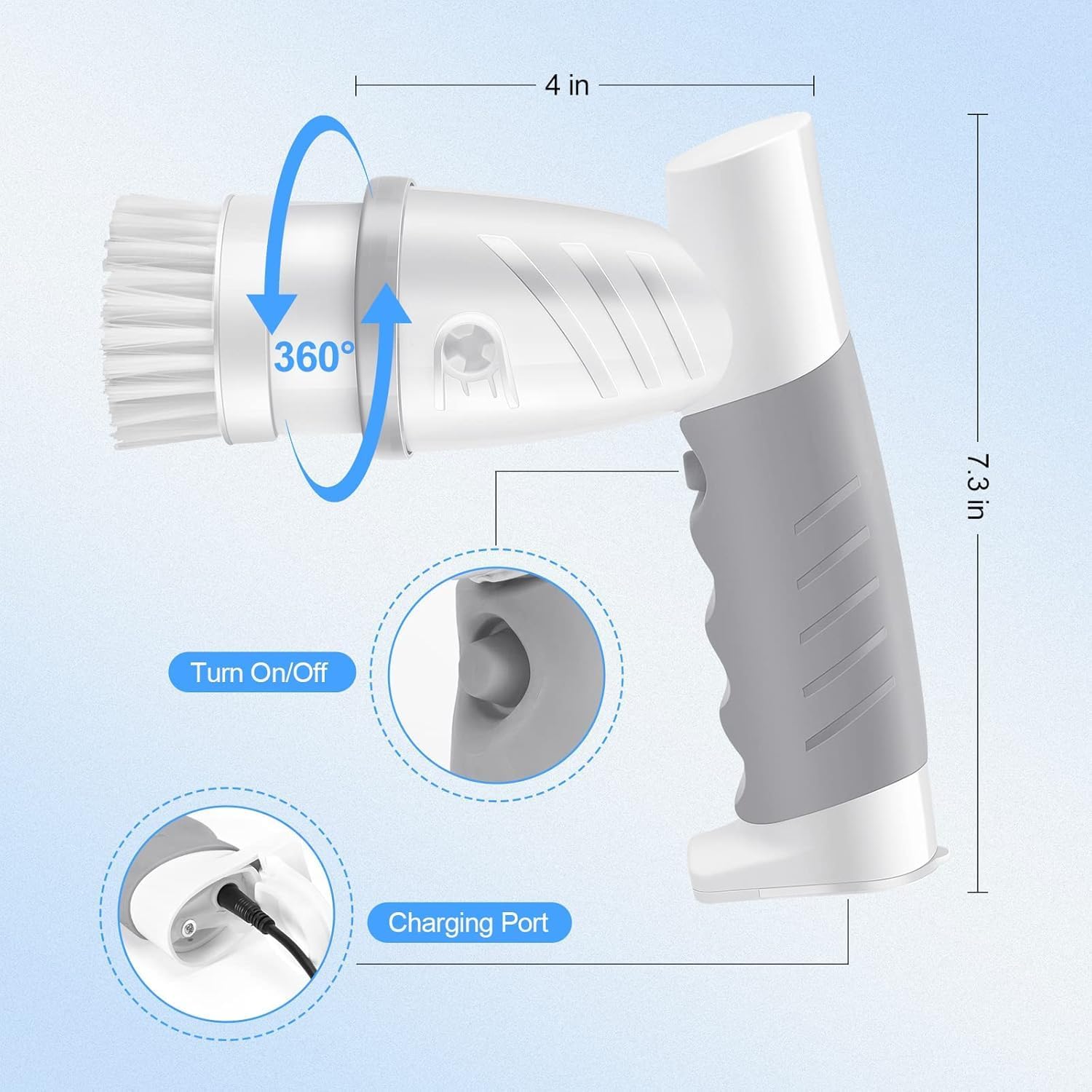 - 【Upgrade Electric Spin Scrubber】Say goodbye to outdated cleaning tools, upgrade your cleaning routine! With the electric spin scrubber, you’ll enjoy a faster, more effective cleaning process, which completes tasks in half the time compared to traditional cleaning methods. Its robust spinning action makes light work of tough stains, grime, and dirt, ensuring your home looks spotless without the hassle. Spend less time scrubbing and more time enjoying life!