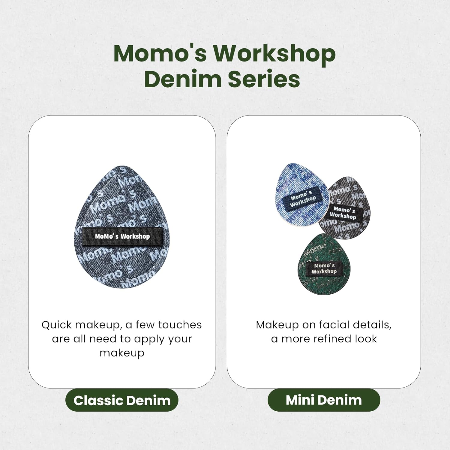 - âïžăTRAVEL-OPTIMIZED PACKAGEă Mini makeup sponge puffs*5+ storage, fit in any makeup pouch.The fashionable and retro denim design allows you to enjoy the makeup process even more, and it's also suitable for carrying when going out.