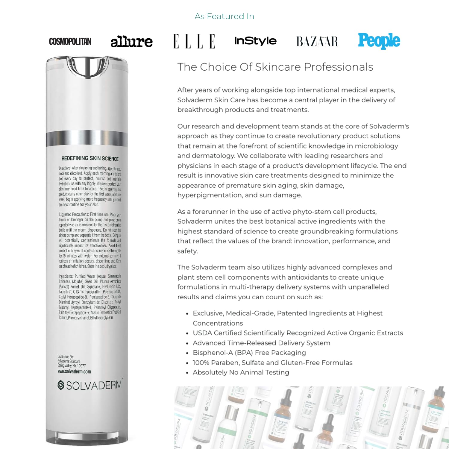 - WRINKLE REDUCTION - Infused with clinically proven peptides, a cutting-edge stem cell complex, and intensely conditioning moisturizers, this professional-strength dermatological solution drastically reduces the appearance of fine lines and wrinkles, boosts the production of the skin-firming proteins collagen and elastin, and provides powerful protection against signs of aging.