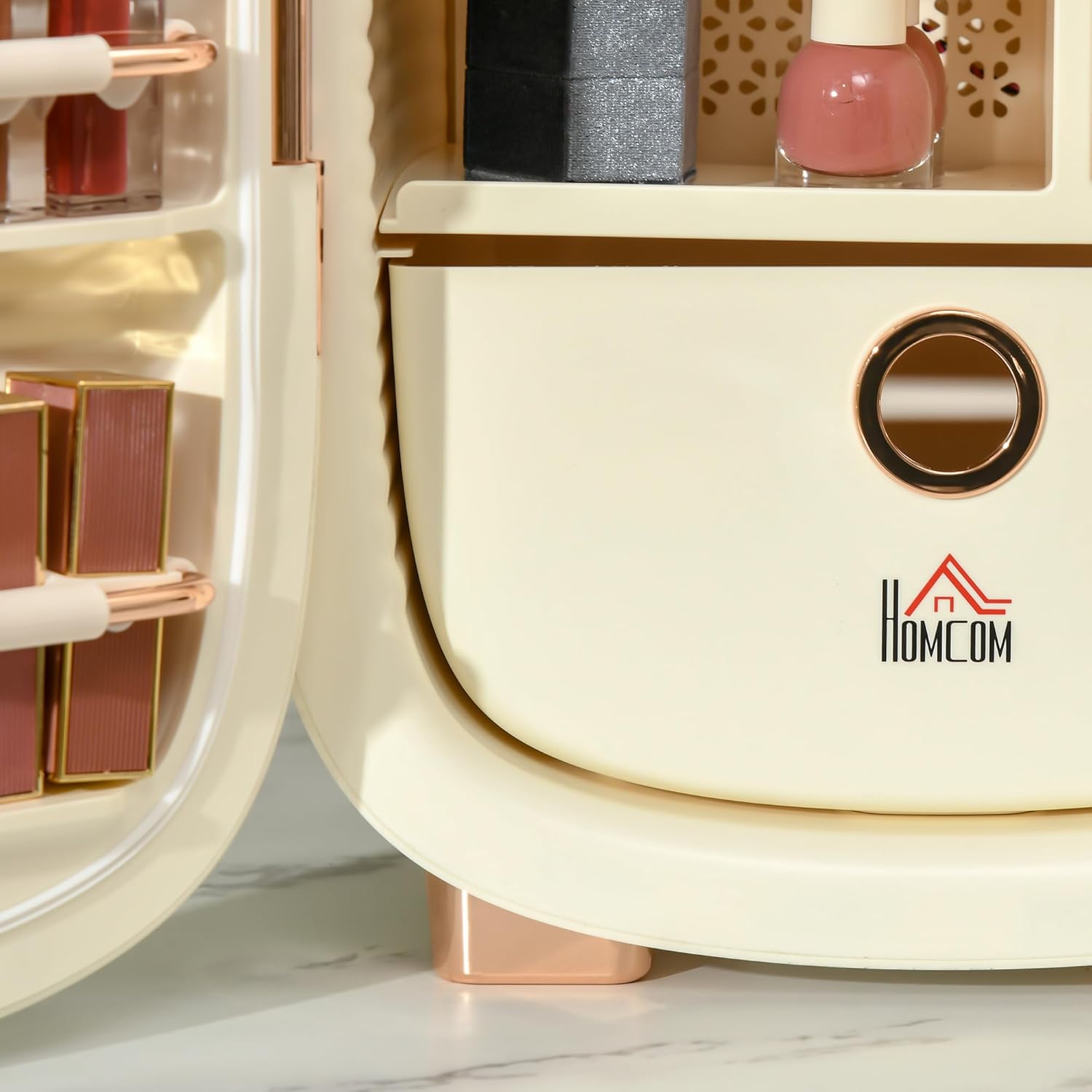 HOMCOM Portable Skincare Fridge with LED Display, 12L Mini Fridge for Beauty, Makeup and Cosmetics, Small Refrigerator Cooler for Bedroom, Home Office, Desktop, White