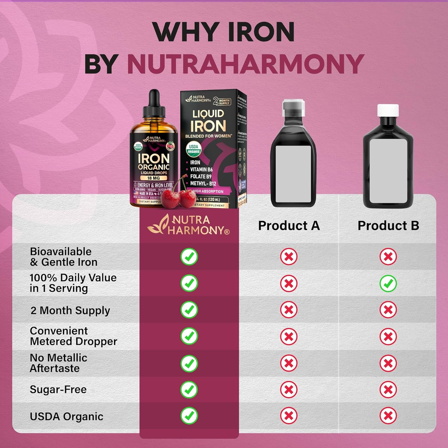 - 🍒 Trustworthy Service – at NUTRAHARMONY, we prioritize premium quality and customer satisfaction, ensuring a seamless wellness experience with our carefully formulated Iron Drops. Because your health is our commitment!